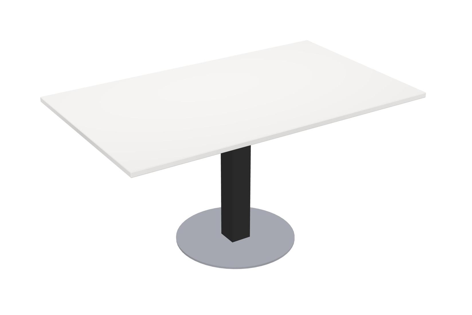 Modular Office, Restaurant, Cafeteria, Lunch Room & Food Service Table With White Tabletop & Black Square Leg & Grey Round Base Plate