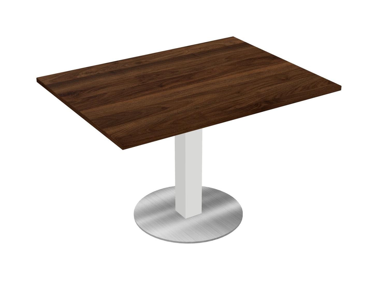 Modular Office, Restaurant, Cafeteria, Lunch Room & Food Service Table With Columbia Walnut Tabletop & White Square Leg & Chrome Round Base Plate