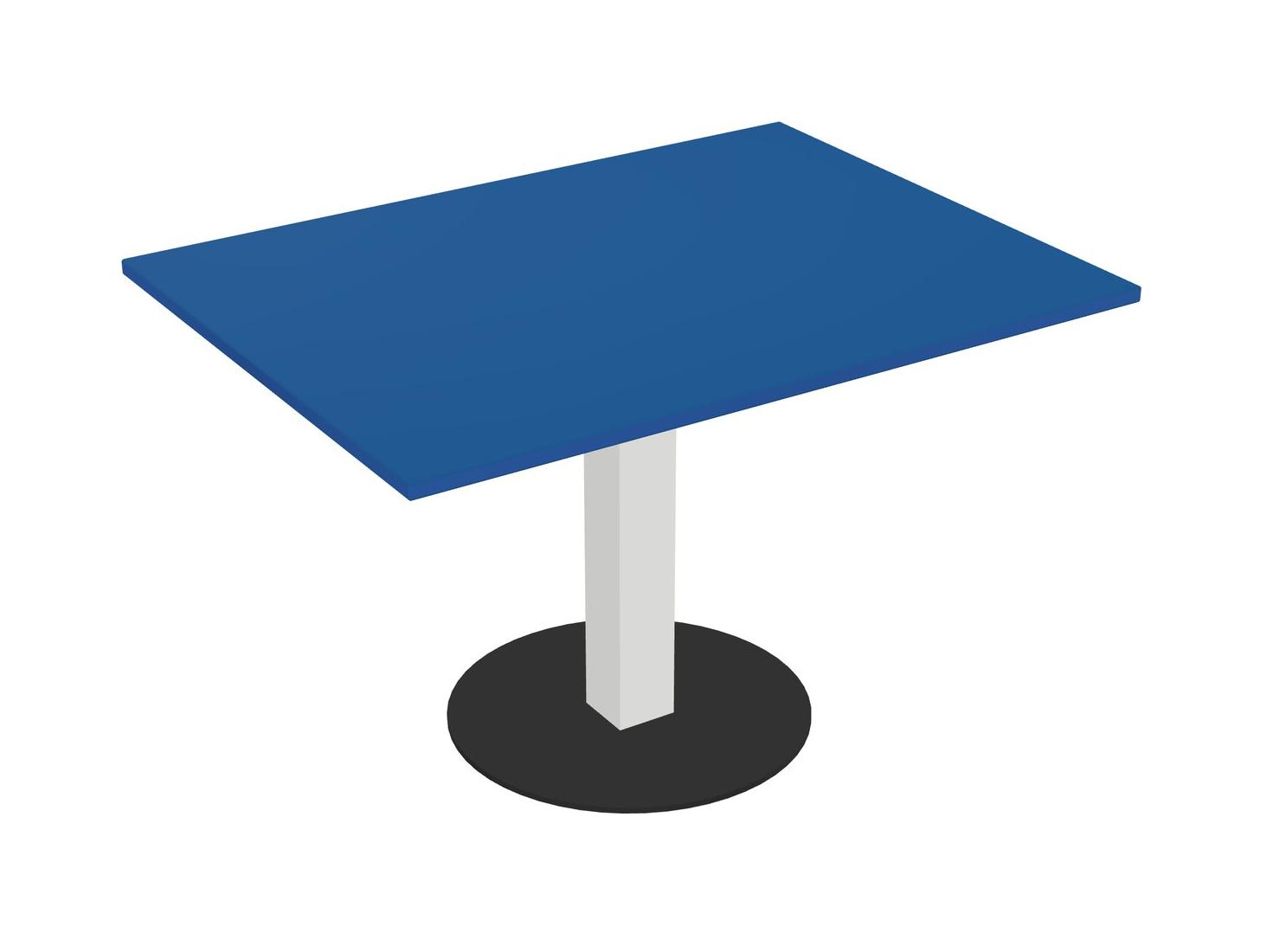Modular Office, Restaurant, Cafeteria, Lunch Room & Food Service Table With Prism Blue Tabletop & White Square Leg & Black Round Base Plate