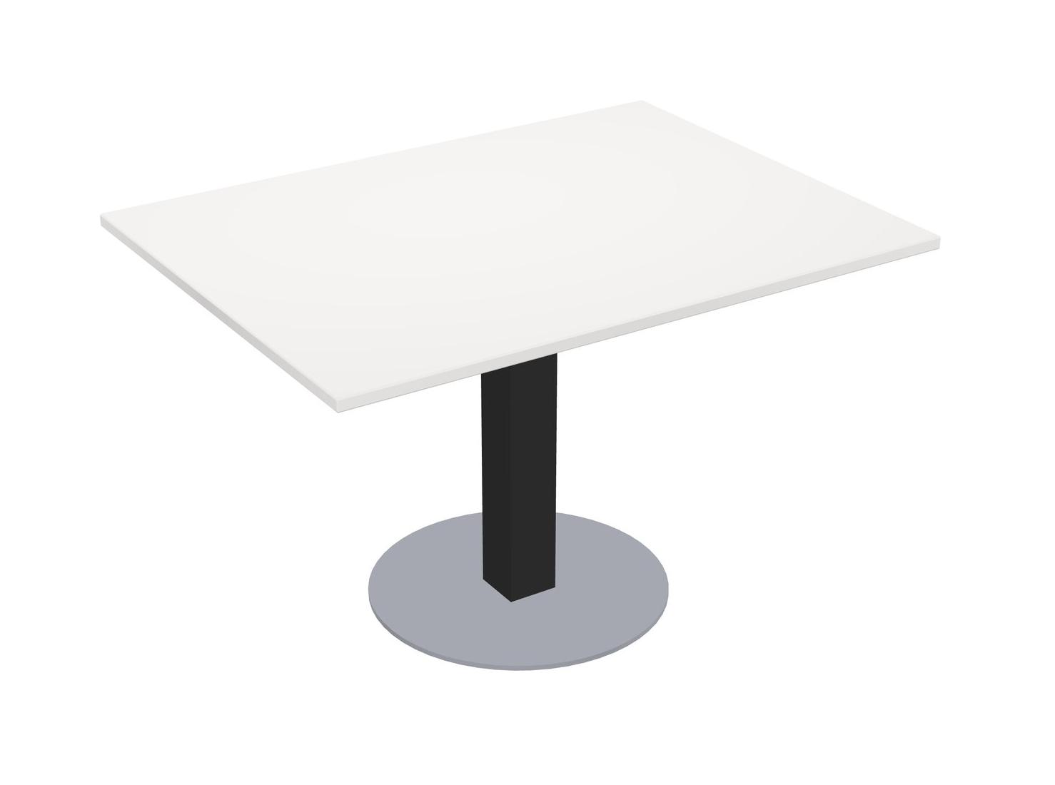 Modular Office, Restaurant, Cafeteria, Lunch Room & Food Service Table With White Tabletop & Black Square Leg & Grey Round Base Plate