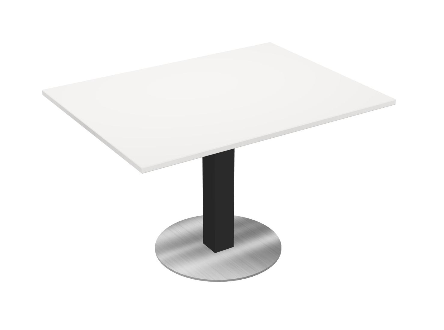 Modular Office, Restaurant, Cafeteria, Lunch Room & Food Service Table With White Tabletop & Black Square Leg & Chrome Round Base Plate