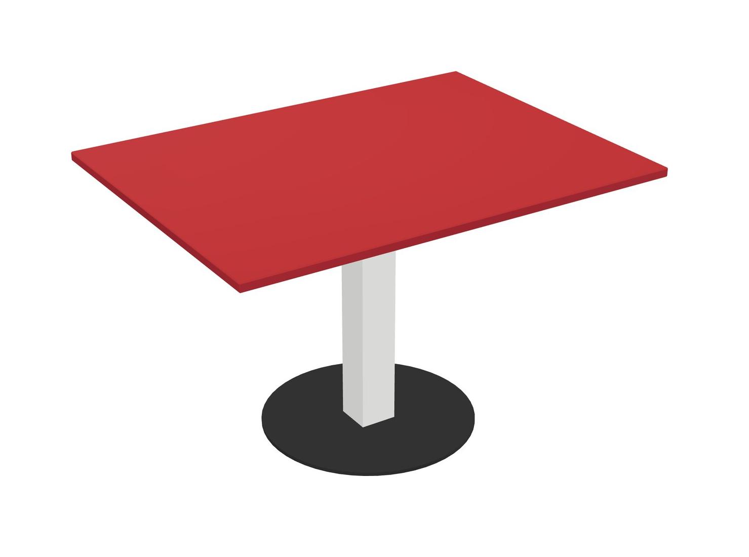 Modular Office, Restaurant, Cafeteria, Lunch Room & Food Service Table With Prism Red Tabletop & White Square Leg & Black Round Base Plate
