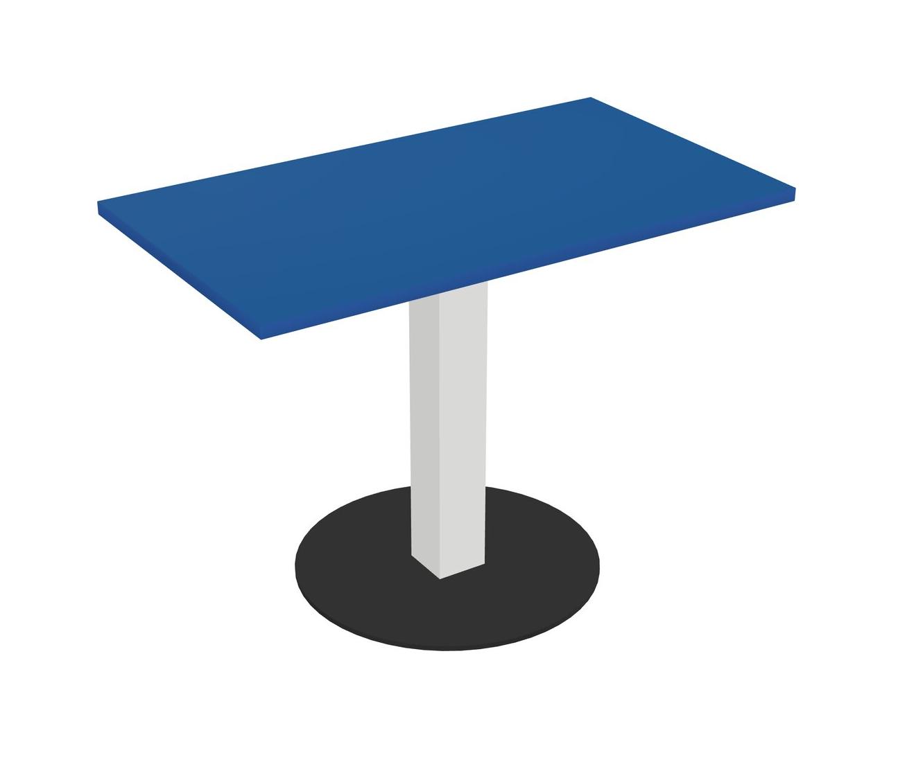 Modular Office, Restaurant, Cafeteria, Lunch Room & Food Service Table With Prism Blue Tabletop & White Square Leg & Black Round Base Plate
