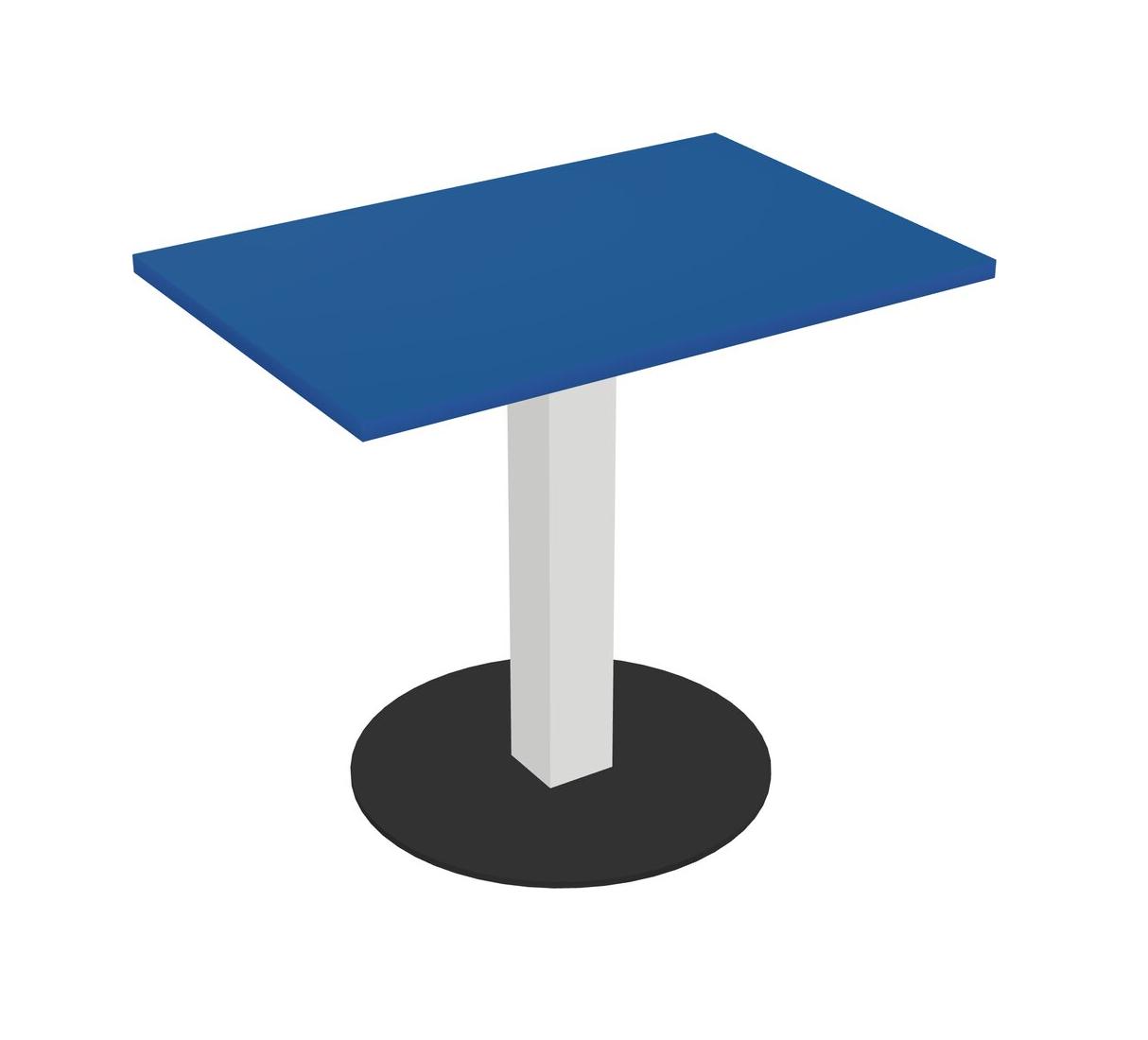Modular Office, Restaurant, Cafeteria, Lunch Room & Food Service Table With Prism Blue Tabletop & White Square Leg & Black Round Base Plate