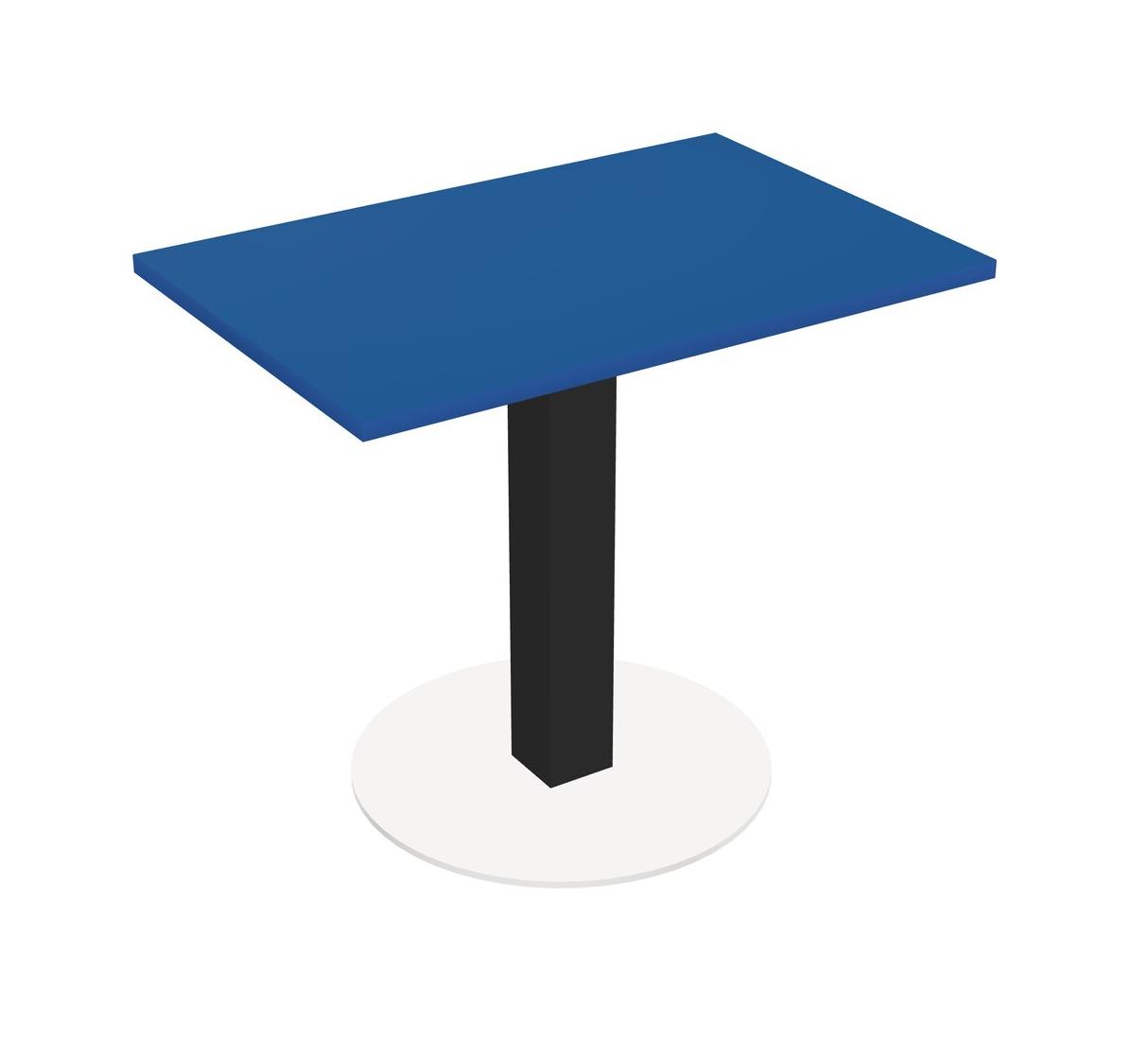 Modular Office, Restaurant, Cafeteria, Lunch Room & Food Service Table With Prism Blue Tabletop & Black Square Leg & White Round Base Plate