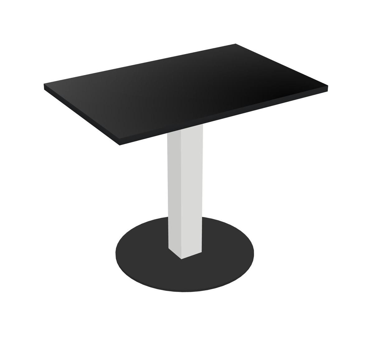 Modular Office, Restaurant, Cafeteria, Lunch Room & Food Service Table With Black Tabletop & White Square Leg & Black Round Base Plate