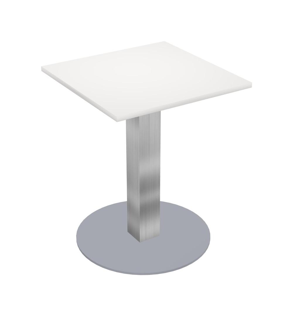 Modular Office, Restaurant, Cafeteria, Lunch Room & Food Service Table With White Tabletop & Chrome Square Leg & Grey Round Base Plate