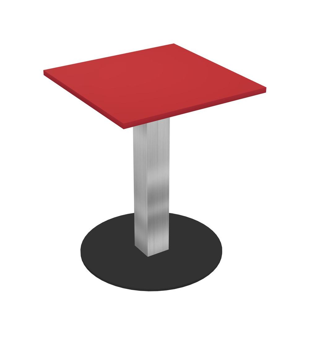 Modular Office, Restaurant, Cafeteria, Lunch Room & Food Service Table With Prism Red Tabletop & Chrome Square Leg & Black Round Base Plate
