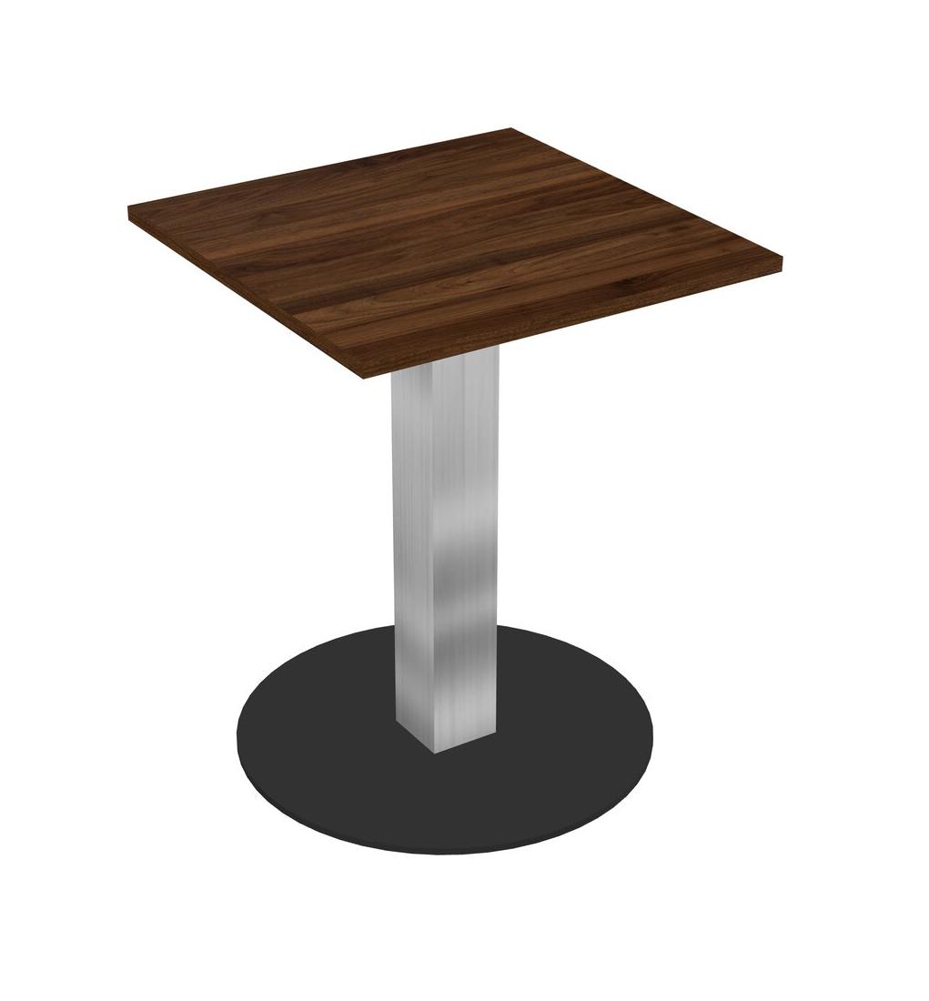Modular Office, Restaurant, Cafeteria, Lunch Room & Food Service Table With Columbia Walnut Tabletop & Chrome Square Leg & Black Round Base Plate