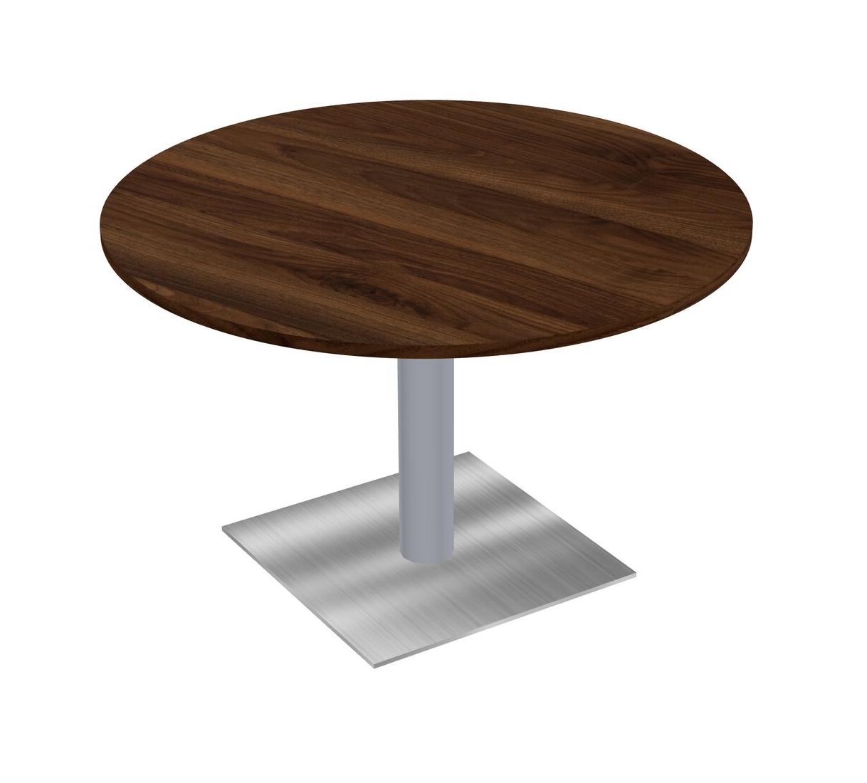 Modular Office, Restaurant, Cafeteria, Lunch Room & Food Service Table With Columbia Walnut Tabletop & Grey Round Leg & Chrome Square Base Plate