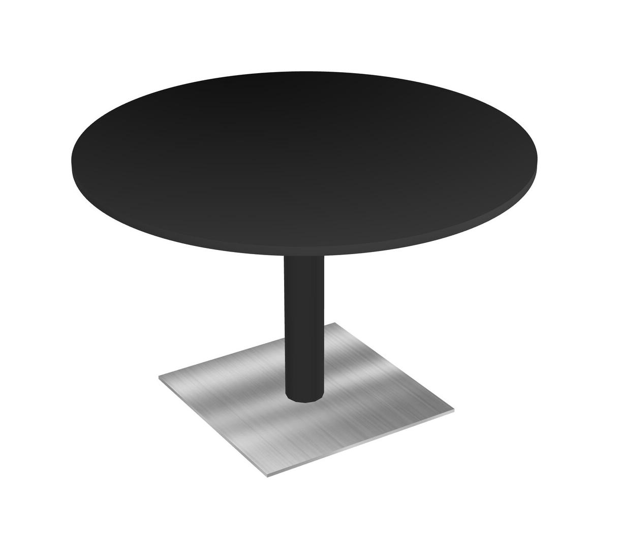 Modular Office, Restaurant, Cafeteria, Lunch Room & Food Service Table With Black Tabletop & Black Round Leg & Chrome Square Base Plate