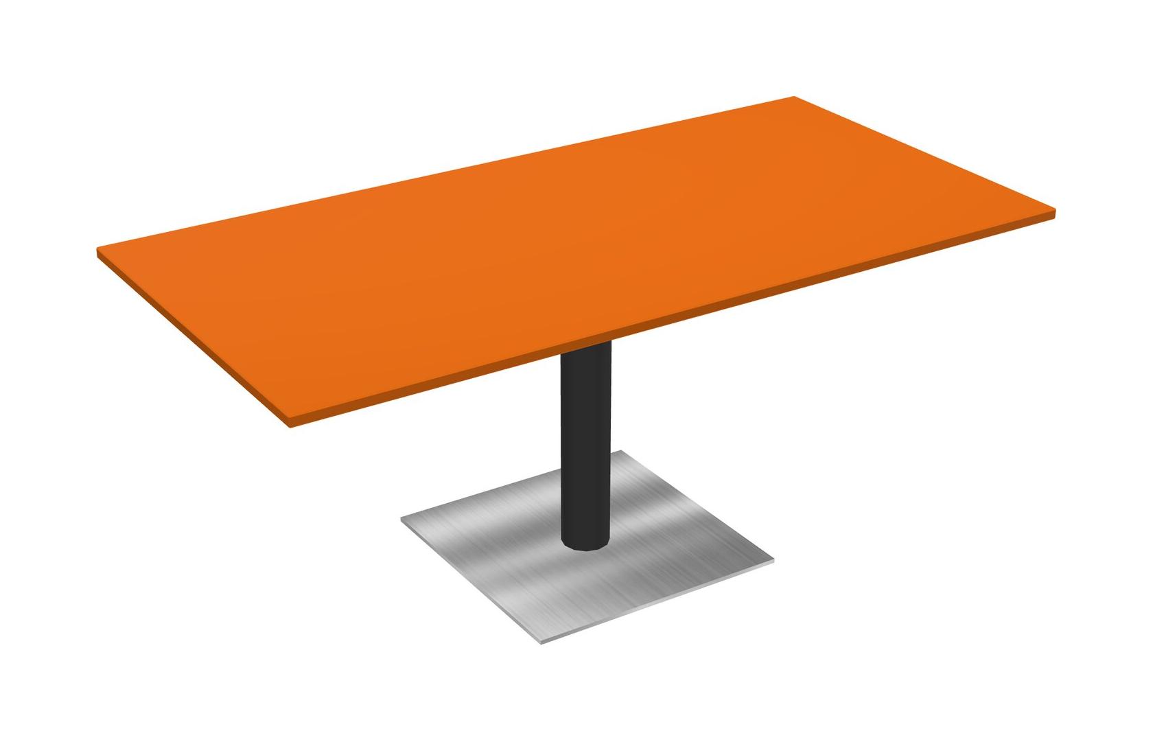 Modular Office, Restaurant, Cafeteria, Lunch Room & Food Service Table With Orange Tabletop & Black Round Leg & Chrome Square Base Plate