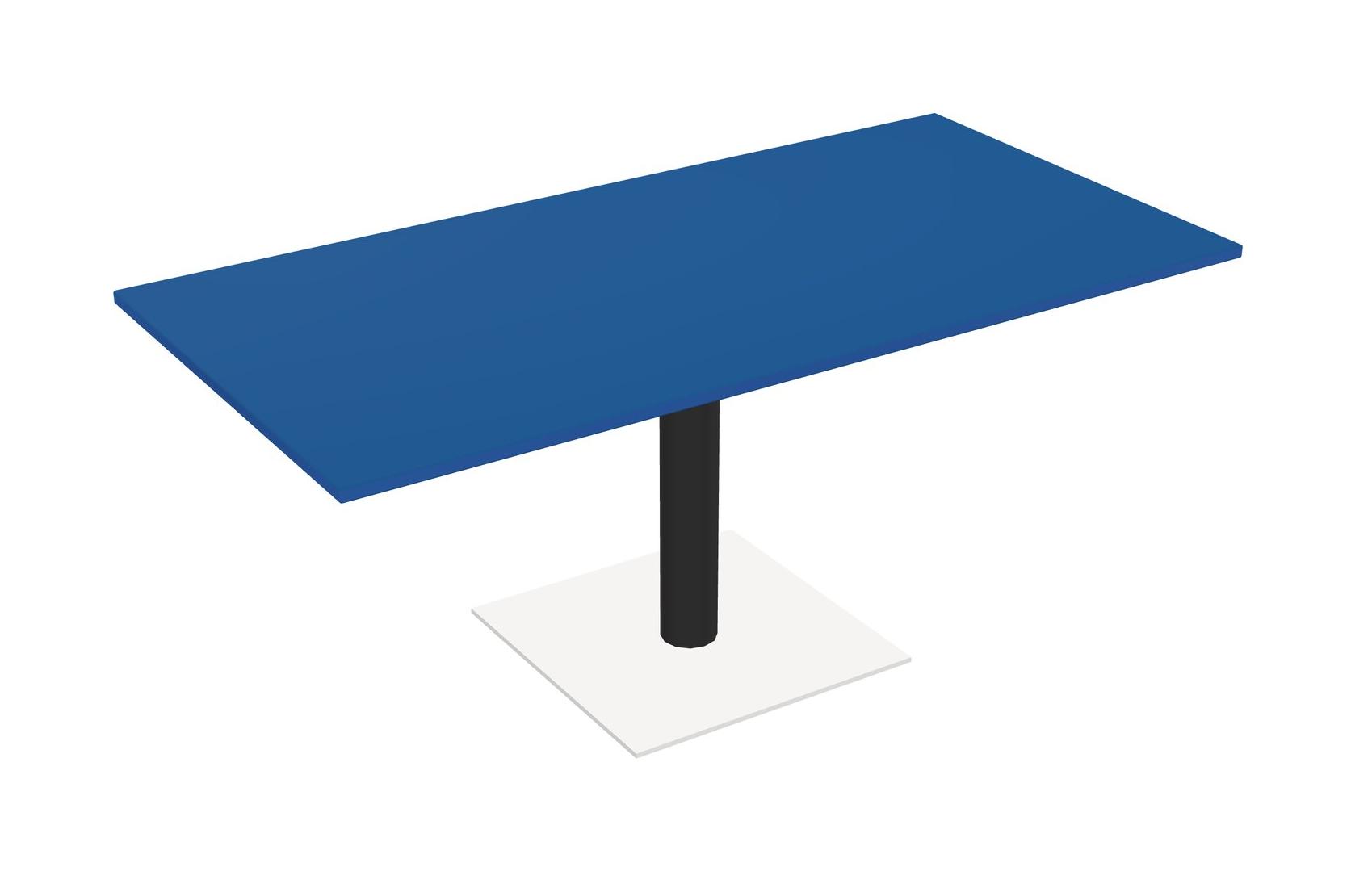 Modular Office, Restaurant, Cafeteria, Lunch Room & Food Service Table With Prism Blue Tabletop & Black Round Leg & White Square Base Plate