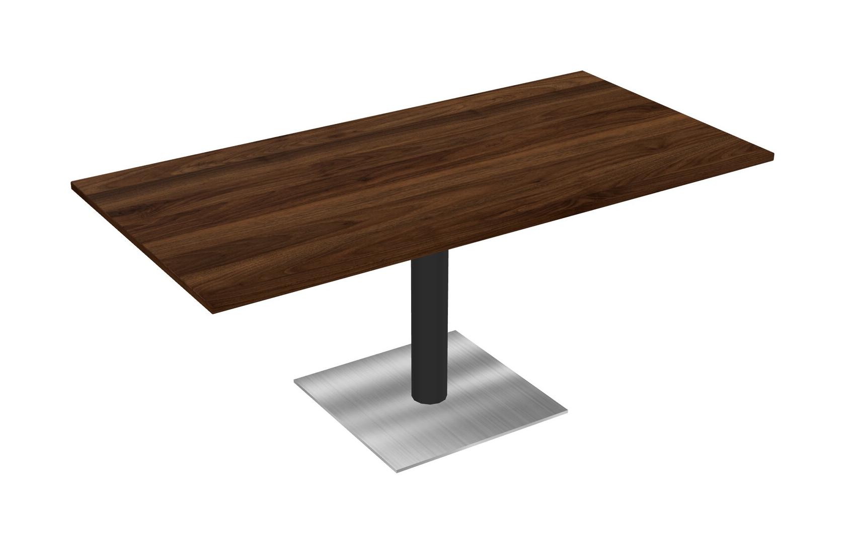 Modular Office, Restaurant, Cafeteria, Lunch Room & Food Service Table With Columbia Walnut Tabletop & Black Round Leg & Chrome Square Base Plate