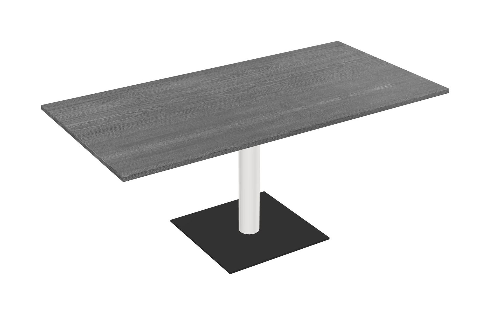 Modular Office, Restaurant, Cafeteria, Lunch Room & Food Service Table With Grey Tabletop & White Round Leg & Black Square Base Plate