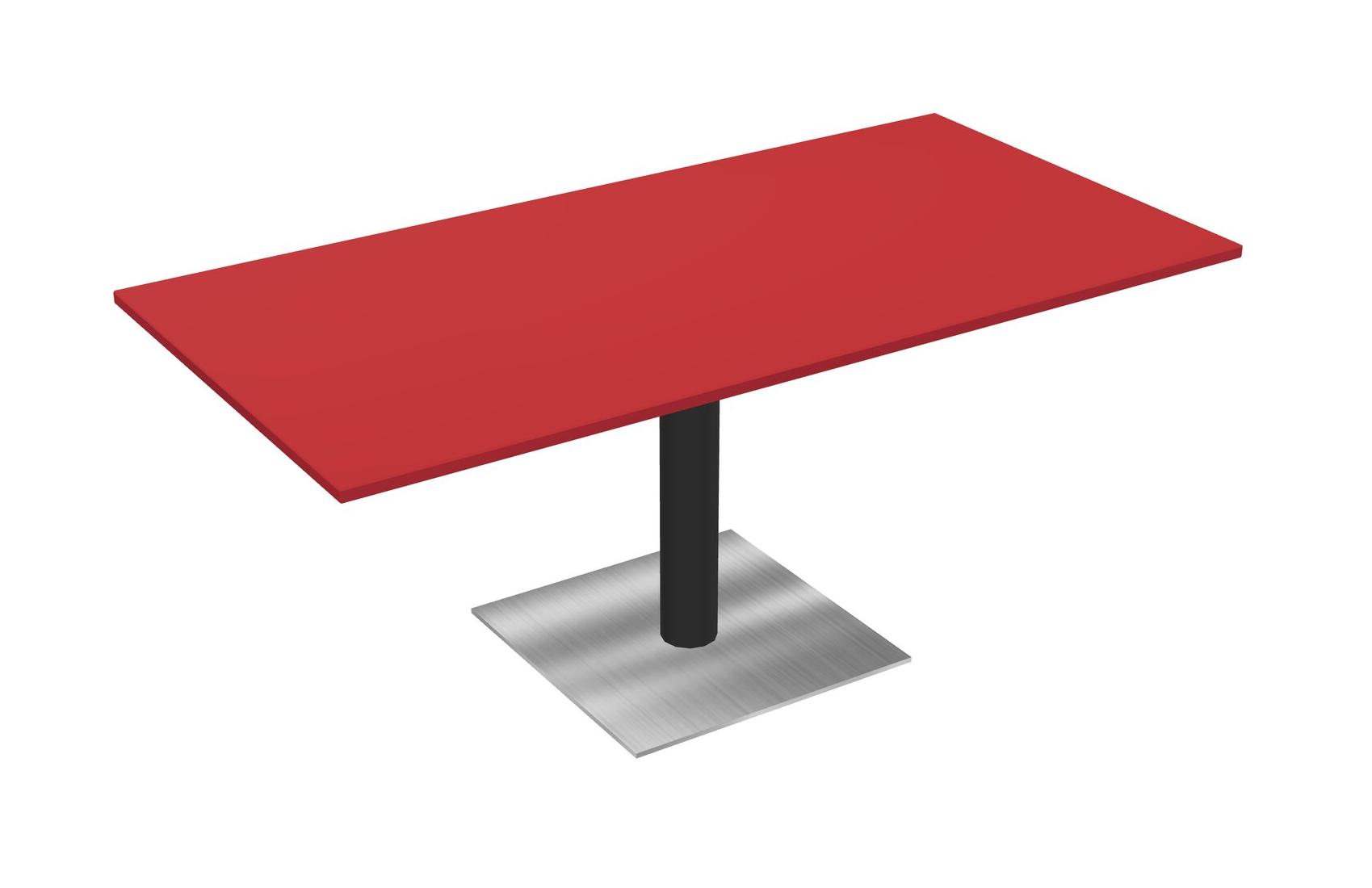Modular Office, Restaurant, Cafeteria, Lunch Room & Food Service Table With Prism Red Tabletop & Black Round Leg & Chrome Square Base Plate