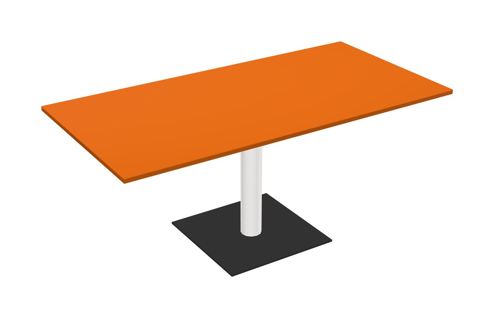 Modular Office, Restaurant, Cafeteria, Lunch Room & Food Service Table With Orange Tabletop & White Round Leg & Black Square Base Plate