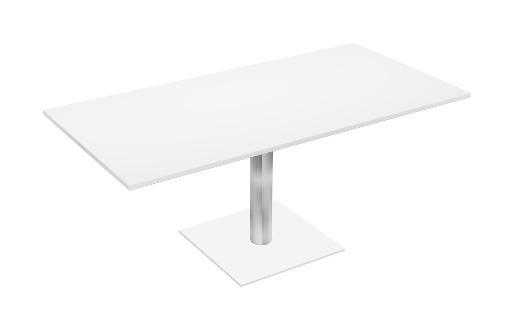 Modular Office, Restaurant, Cafeteria, Lunch Room & Food Service Table With White Tabletop & Chrome Round Leg & White Square Base Plate