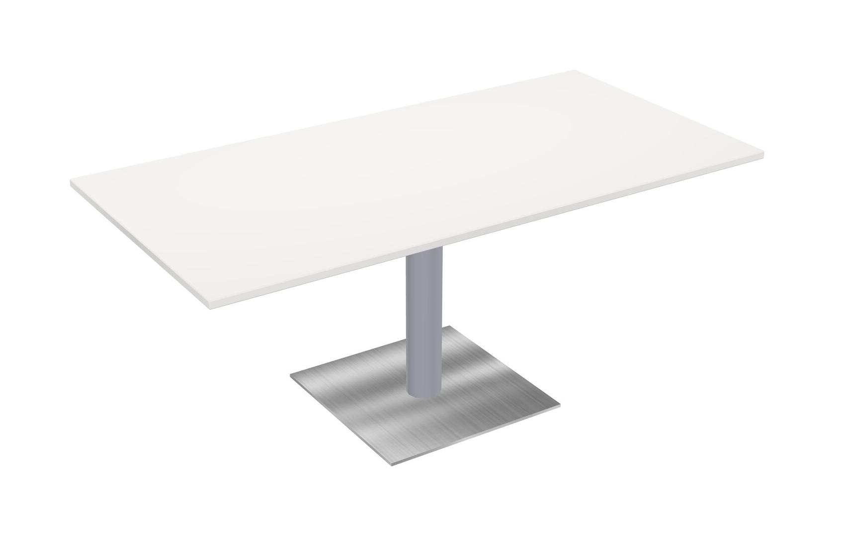 Modular Office, Restaurant, Cafeteria, Lunch Room & Food Service Table With White Tabletop & Grey Round Leg & Chrome Square Base Plate