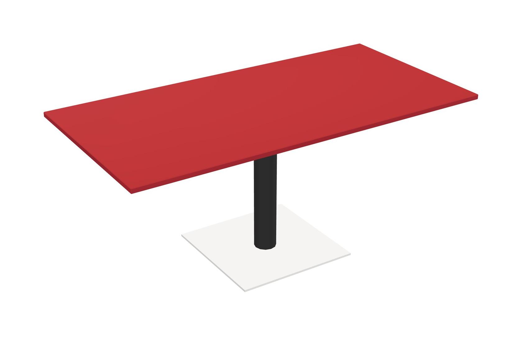 Modular Office, Restaurant, Cafeteria, Lunch Room & Food Service Table With Prism Red Tabletop & Black Round Leg & White Square Base Plate