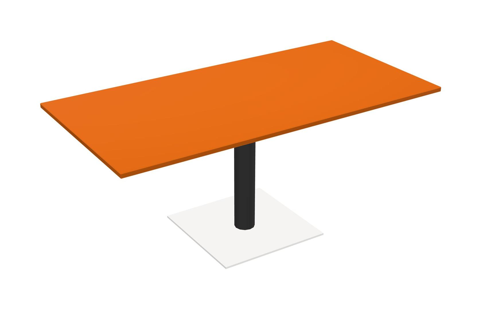 Modular Office, Restaurant, Cafeteria, Lunch Room & Food Service Table With Orange Tabletop & Black Round Leg & White Square Base Plate