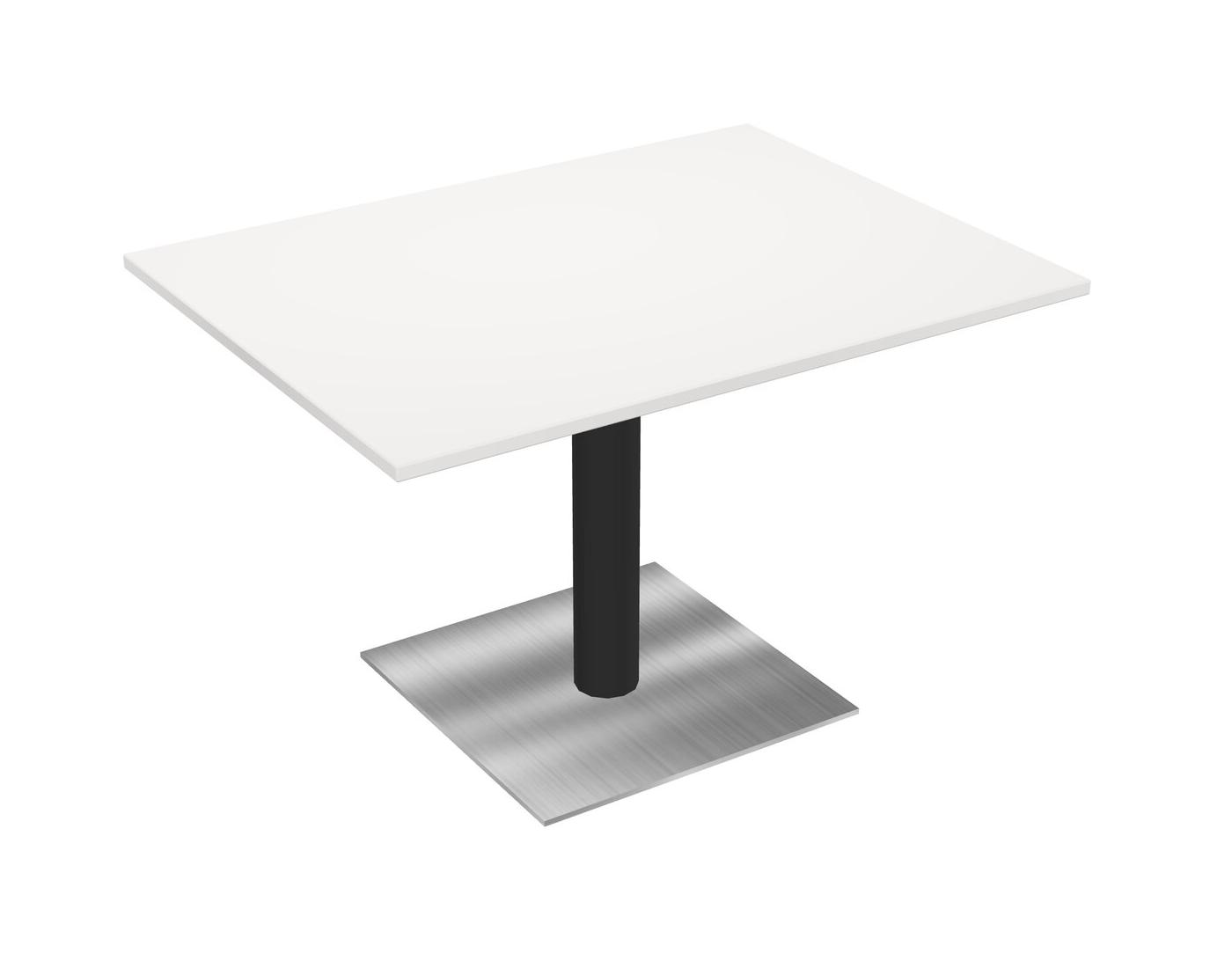 Modular Office, Restaurant, Cafeteria, Lunch Room & Food Service Table With White Tabletop & Black Round Leg & Chrome Square Base Plate