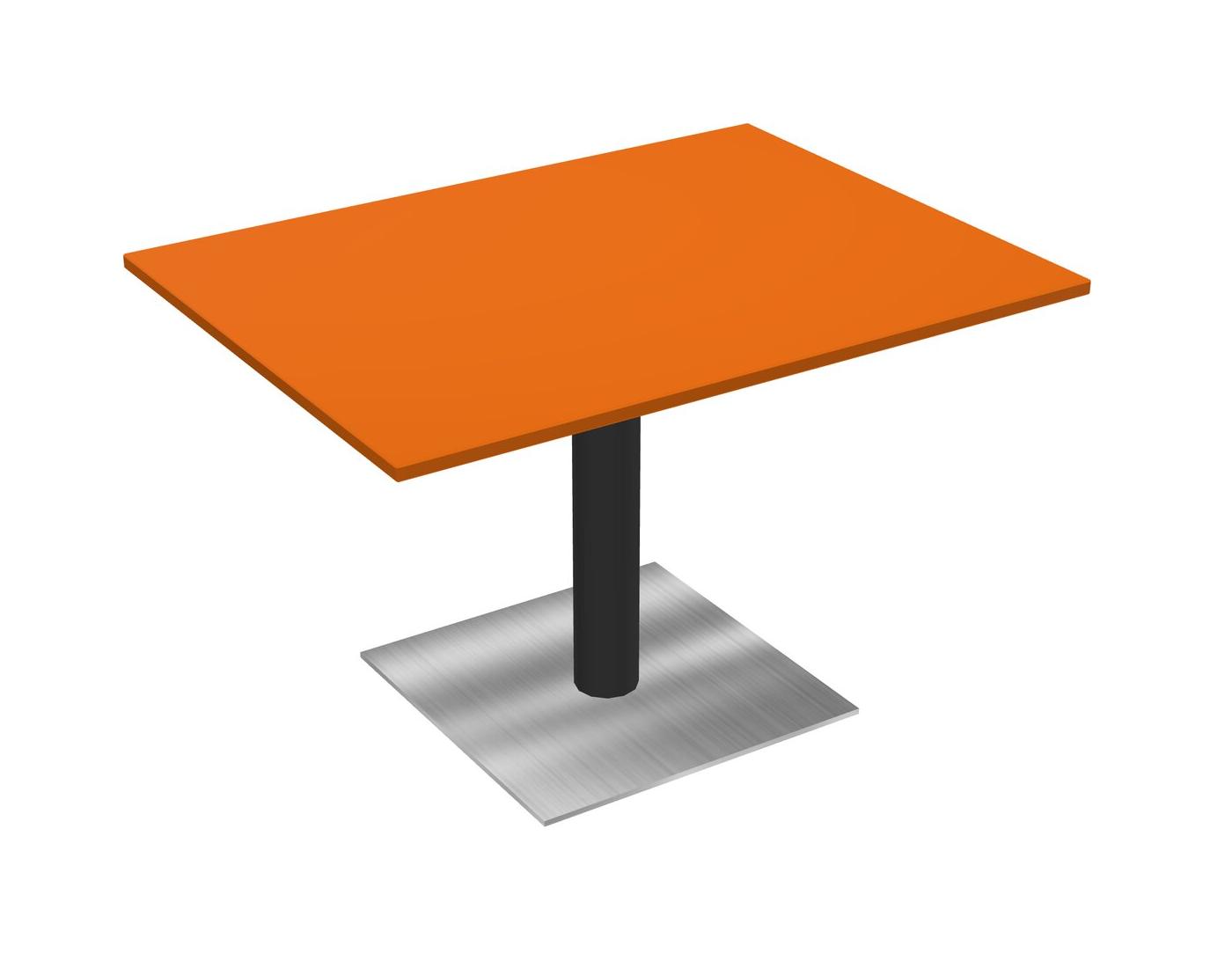 Modular Office, Restaurant, Cafeteria, Lunch Room & Food Service Table With Orange Tabletop & Black Round Leg & Chrome Square Base Plate
