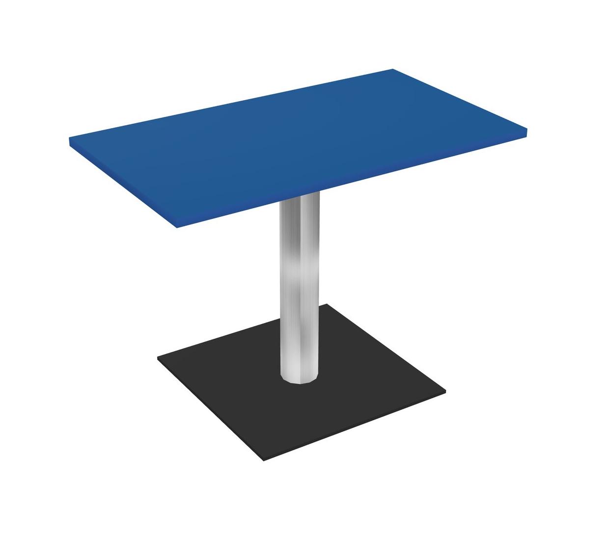 Modular Office, Restaurant, Cafeteria, Lunch Room & Food Service Table With Prism Blue Tabletop & Chrome Round Leg & Black Square Base Plate