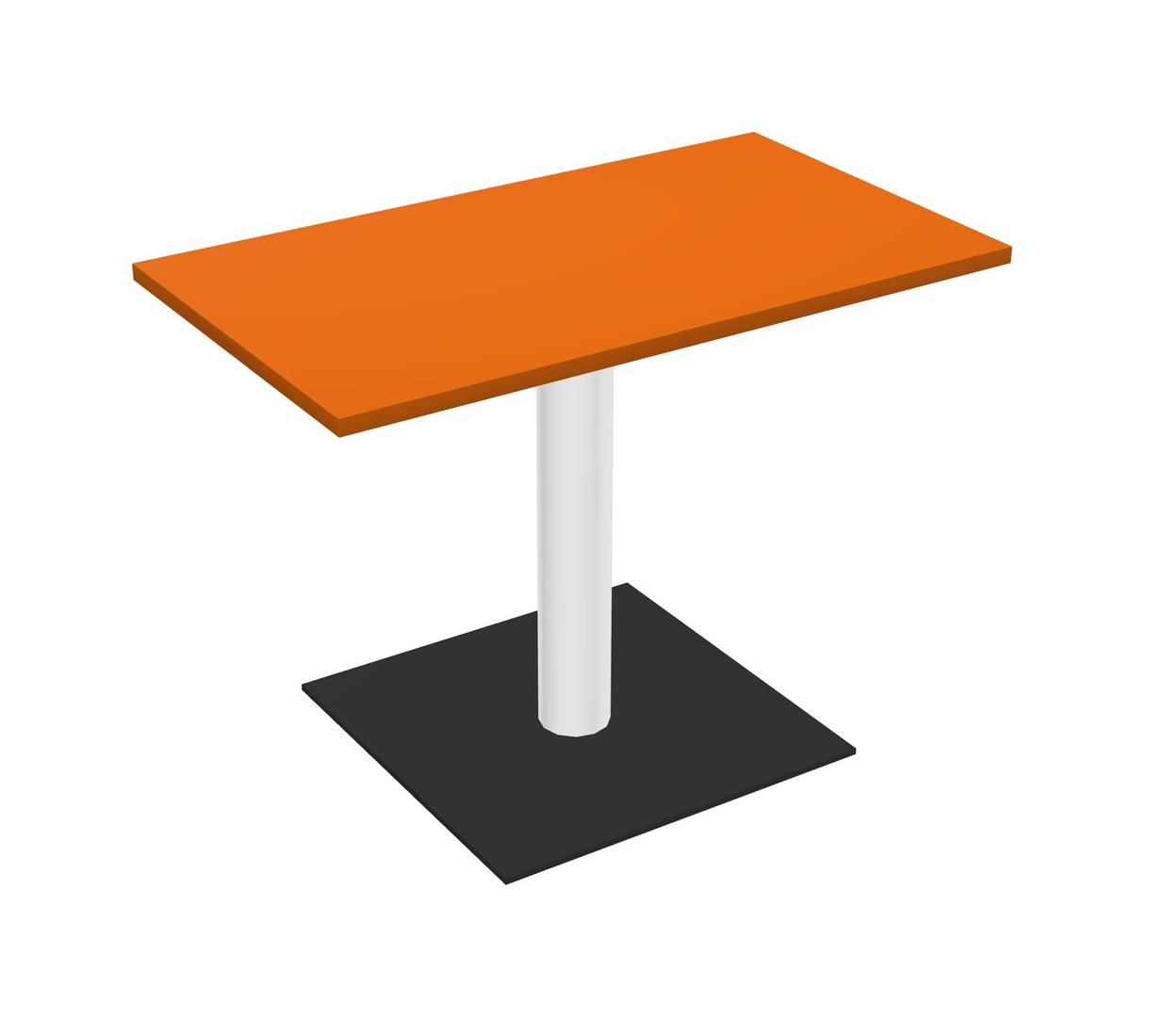Modular Office, Restaurant, Cafeteria, Lunch Room & Food Service Table With Orange Tabletop & White Round Leg & Black Square Base Plate