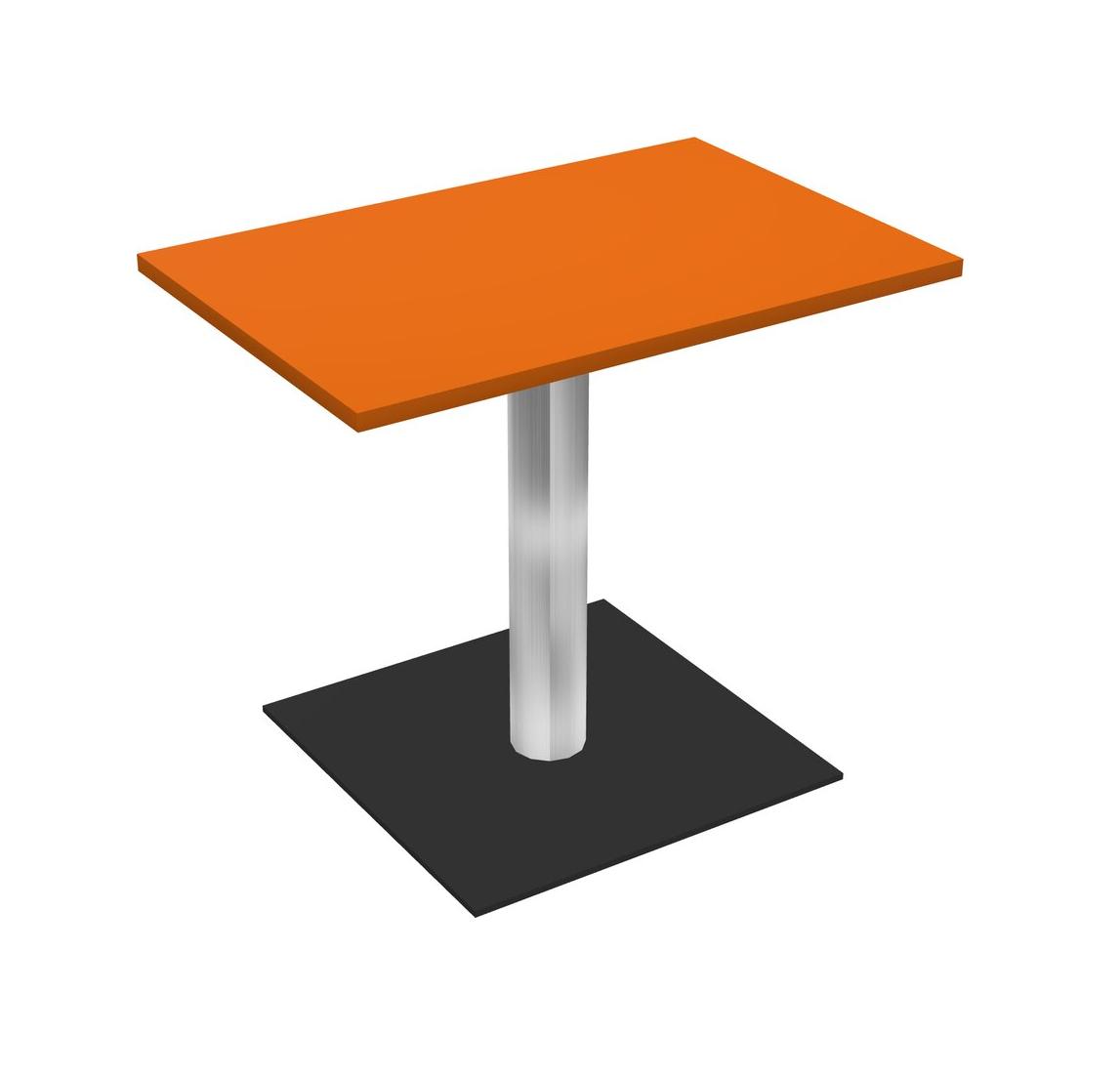 Modular Office, Restaurant, Cafeteria, Lunch Room & Food Service Table With Orange Tabletop & Chrome Round Leg & Black Square Base Plate