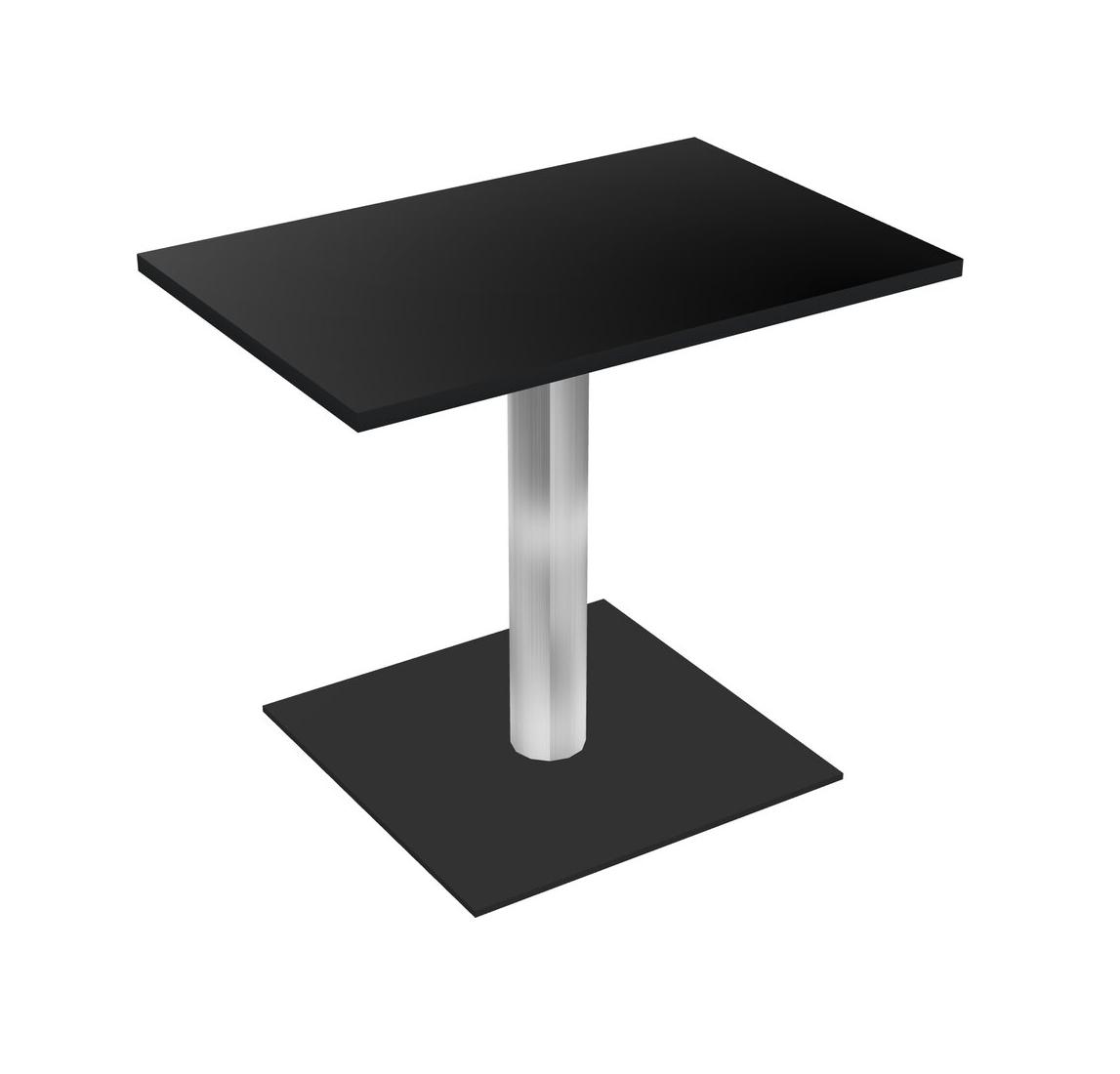 Modular Office, Restaurant, Cafeteria, Lunch Room & Food Service Table With Black Tabletop & Chrome Round Leg & Black Square Base Plate
