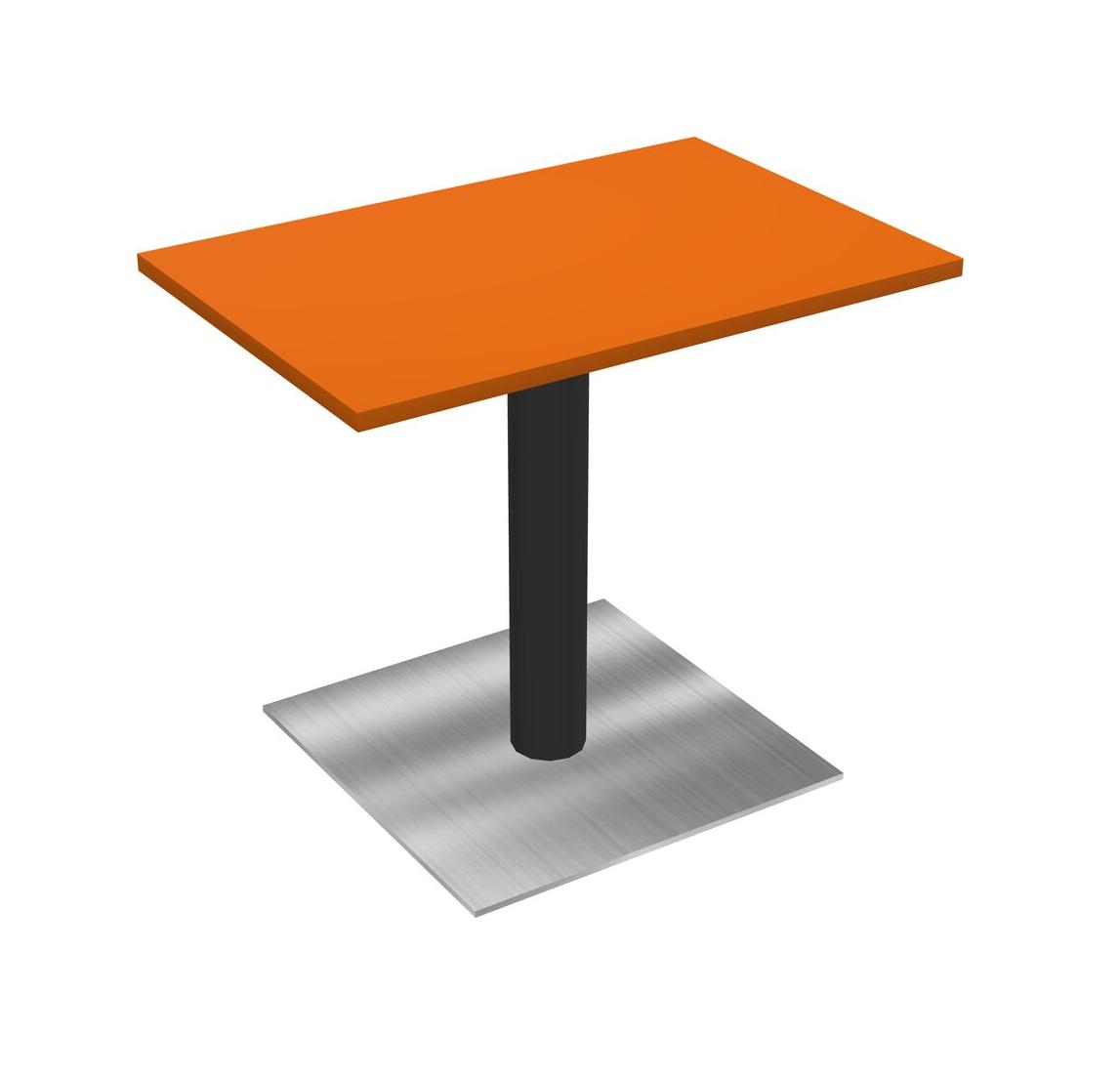 Modular Office, Restaurant, Cafeteria, Lunch Room & Food Service Table With Orange Tabletop & Black Round Leg & Chrome Square Base Plate