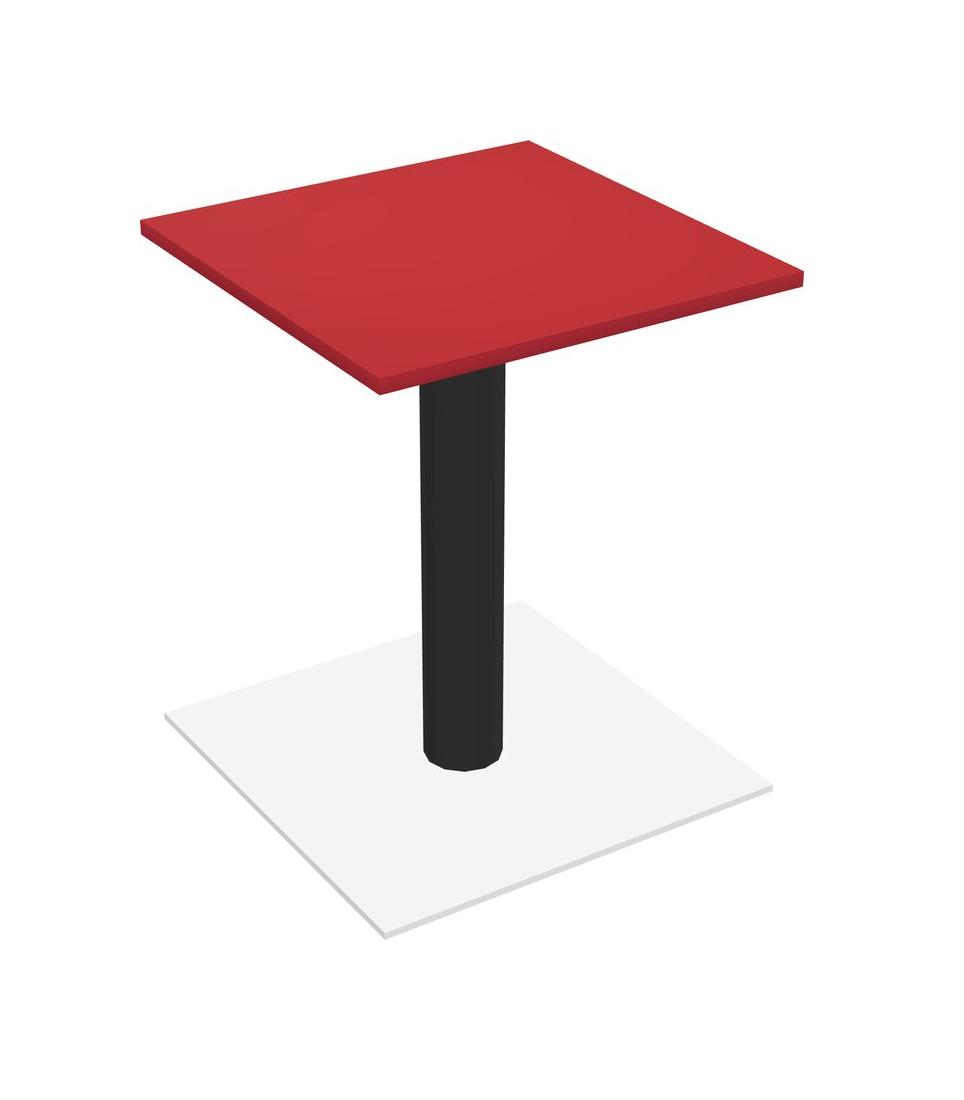 Modular Office, Restaurant, Cafeteria, Lunch Room & Food Service Table With Prism Red Tabletop & Black Round Leg & White Square Base Plate