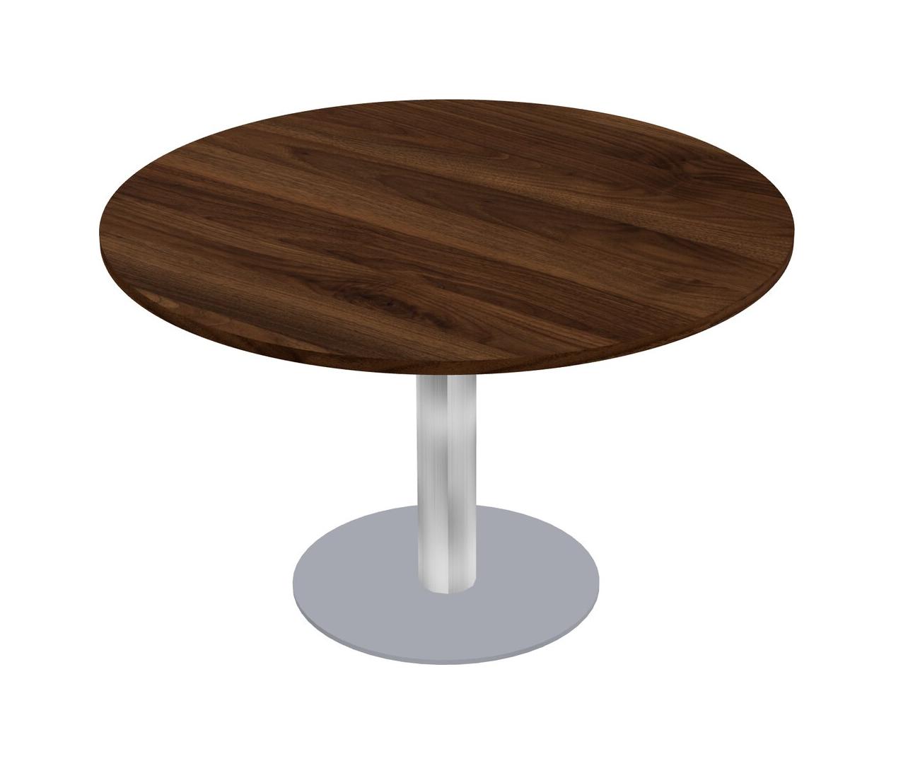Modular Office, Restaurant, Cafeteria, Lunch Room & Food Service Table With Columbia Walnut Tabletop & Chrome Round Leg & Grey Round Base Plate