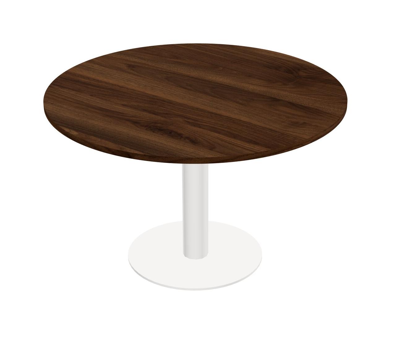 Modular Office, Restaurant, Cafeteria, Lunch Room & Food Service Table With Columbia Walnut Tabletop & White Round Leg & White Round Base Plate