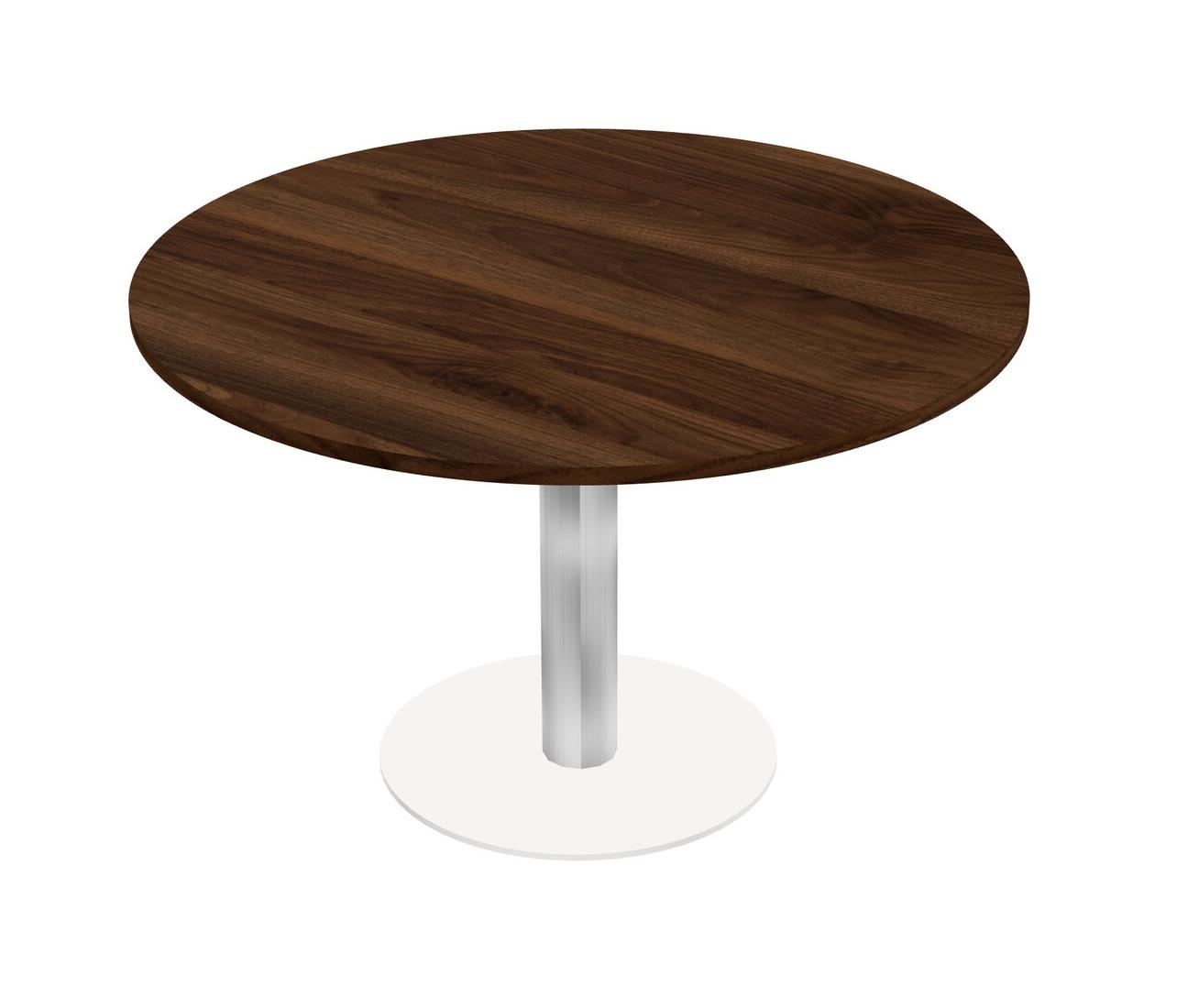 Modular Office, Restaurant, Cafeteria, Lunch Room & Food Service Table With Columbia Walnut Tabletop & Chrome Round Leg & White Round Base Plate