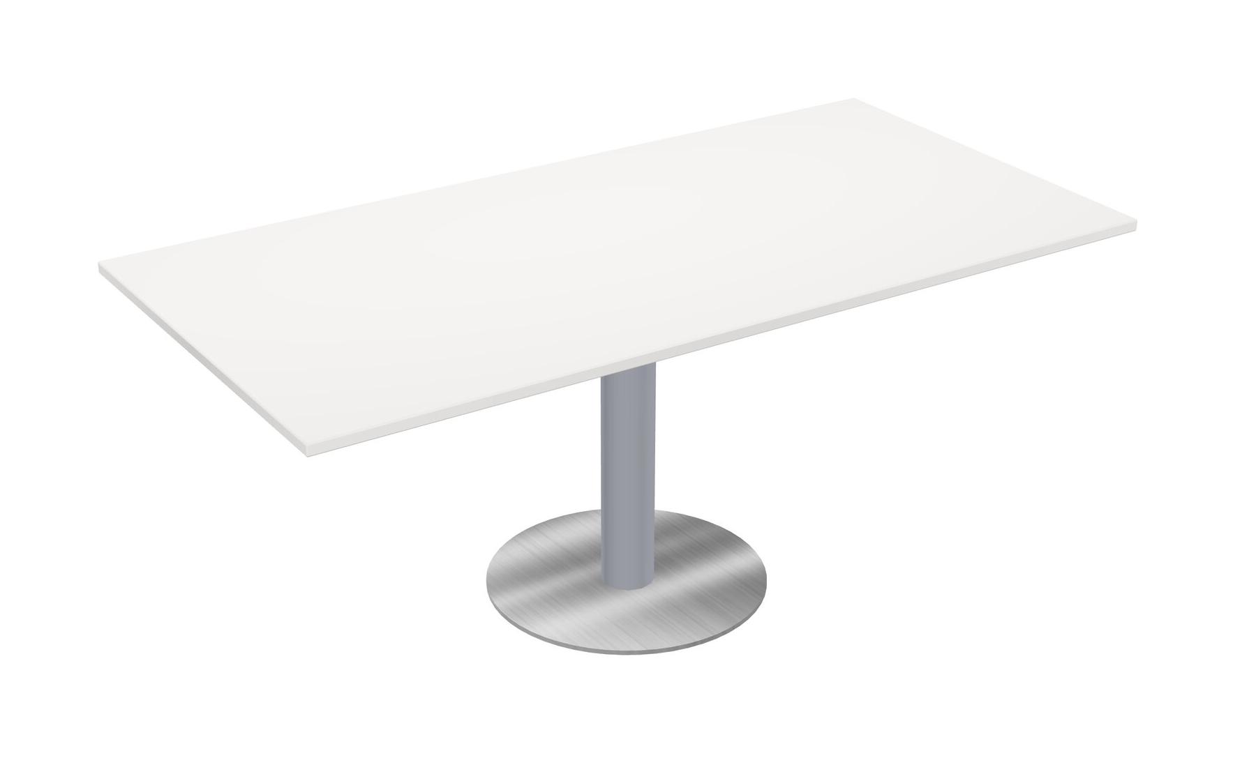 Modular Office, Restaurant, Cafeteria, Lunch Room & Food Service Table With White Tabletop & Grey Round Leg & Chrome Round Base Plate