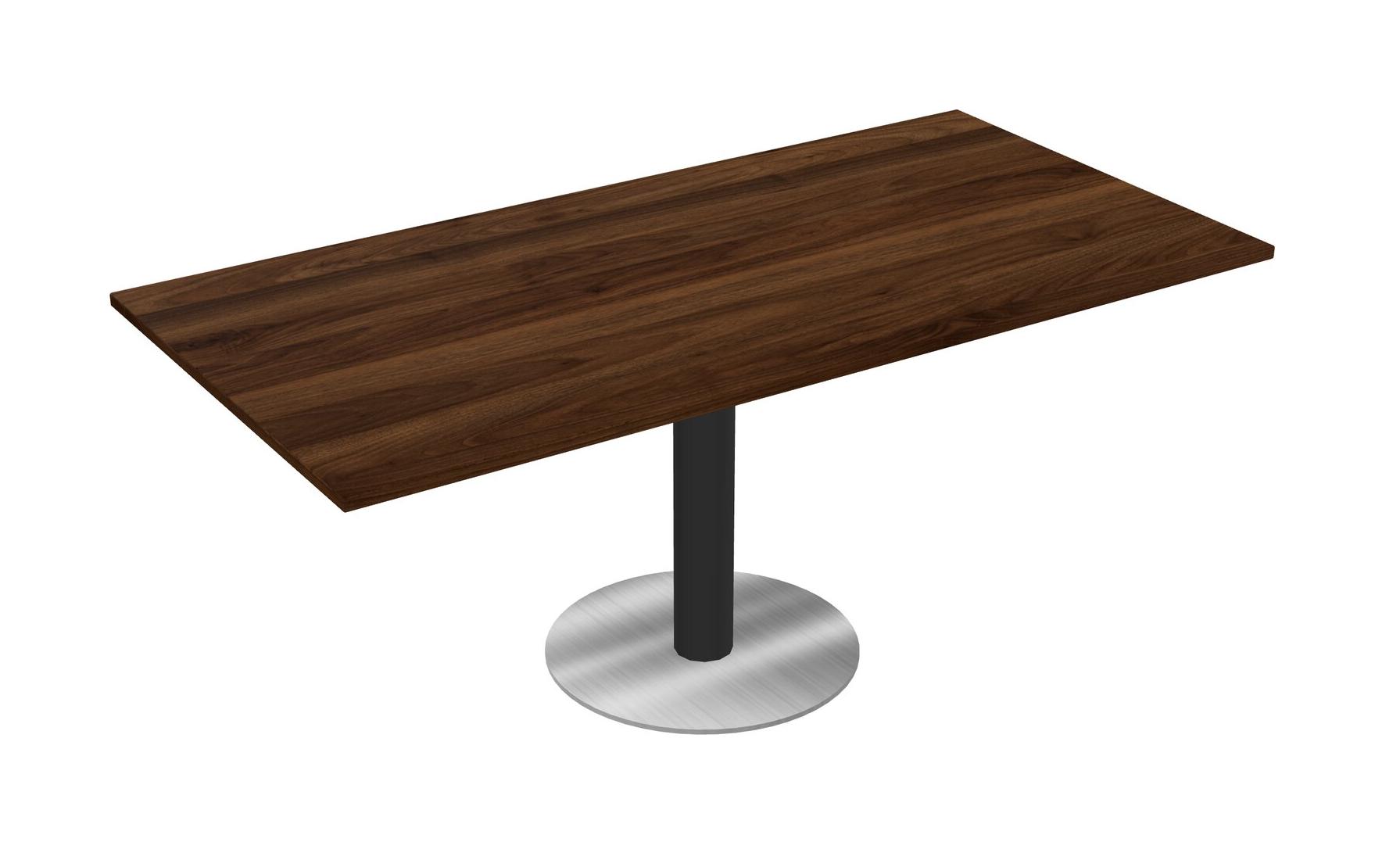 Modular Office, Restaurant, Cafeteria, Lunch Room & Food Service Table With Columbia Walnut Tabletop & Black Round Leg & Chrome Round Base Plate