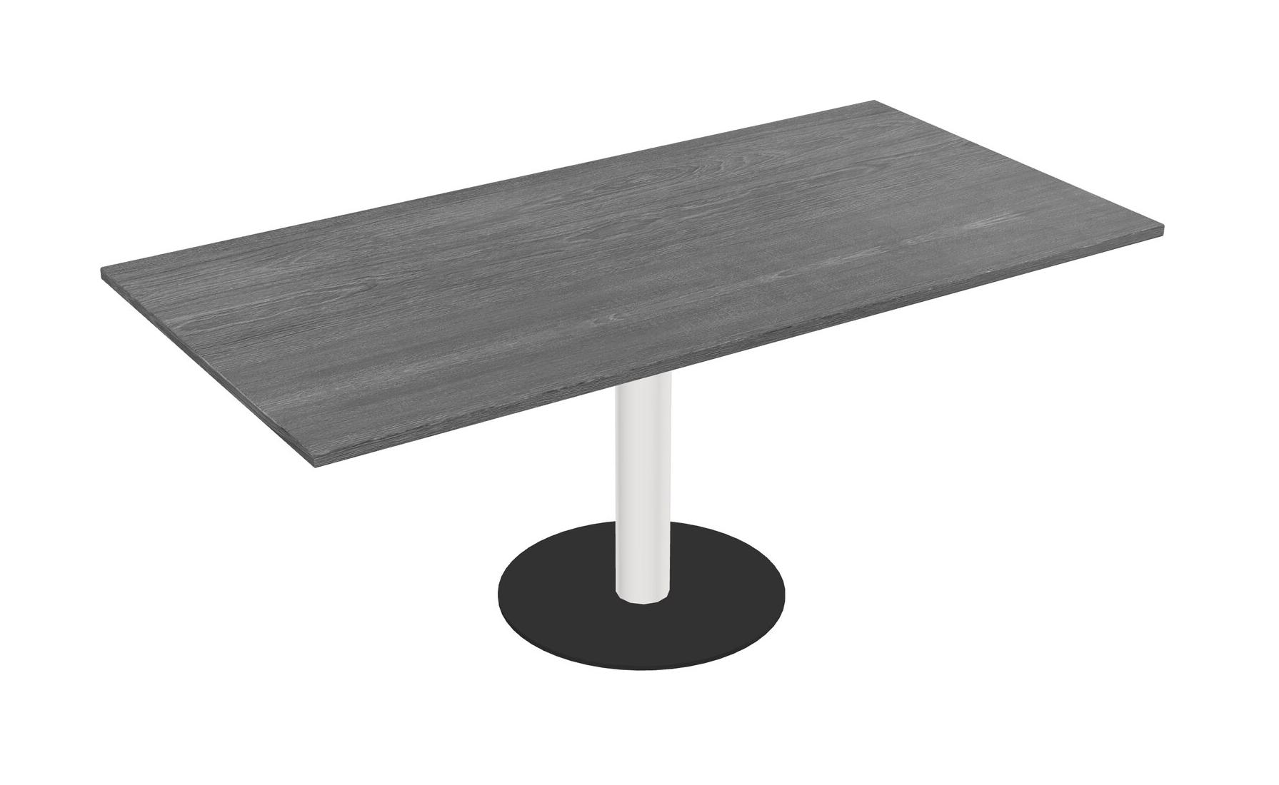 Modular Office, Restaurant, Cafeteria, Lunch Room & Food Service Table With Grey Tabletop & White Round Leg & Black Round Base Plate