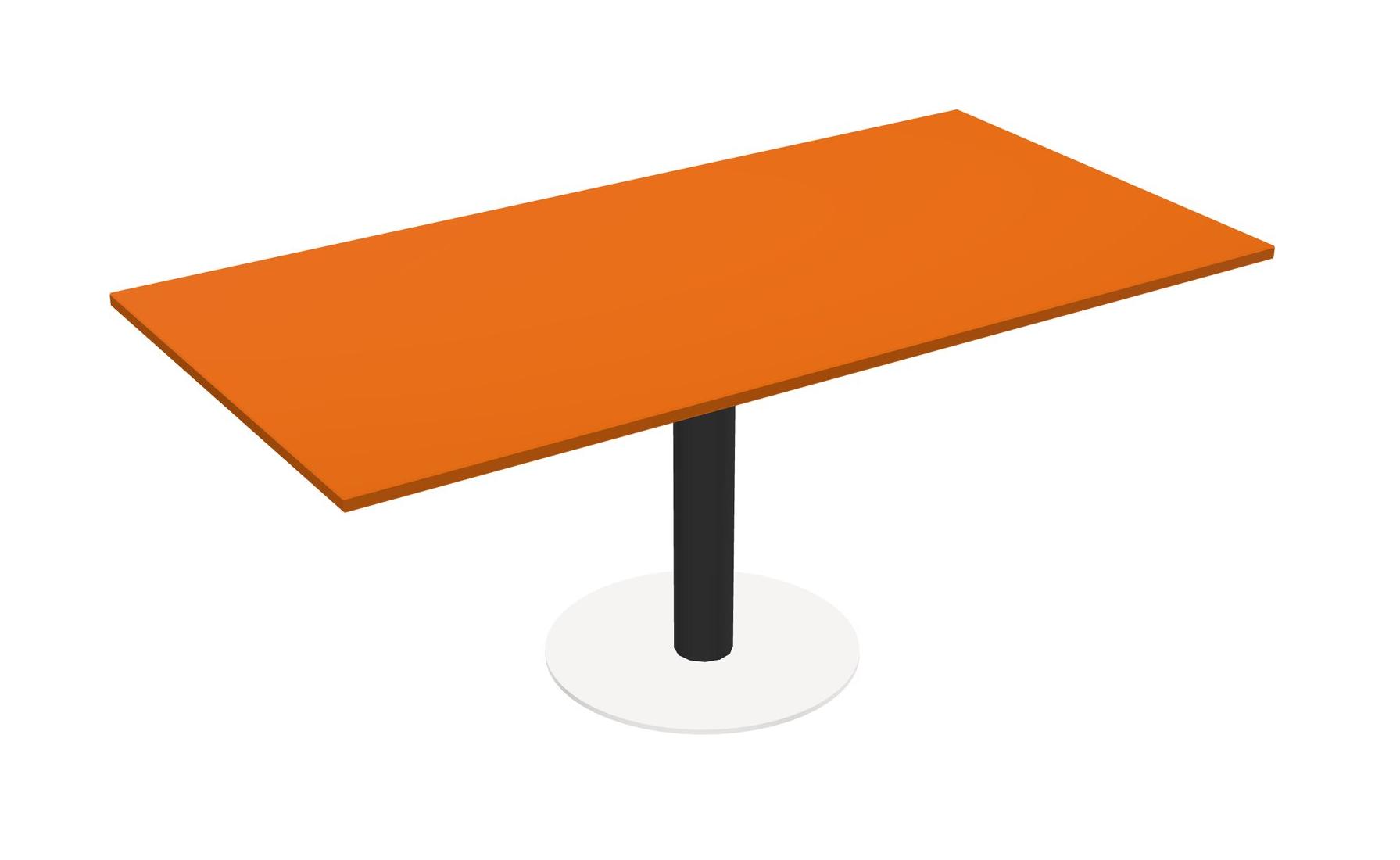 Modular Office, Restaurant, Cafeteria, Lunch Room & Food Service Table With Orange Tabletop & Black Round Leg & White Round Base Plate