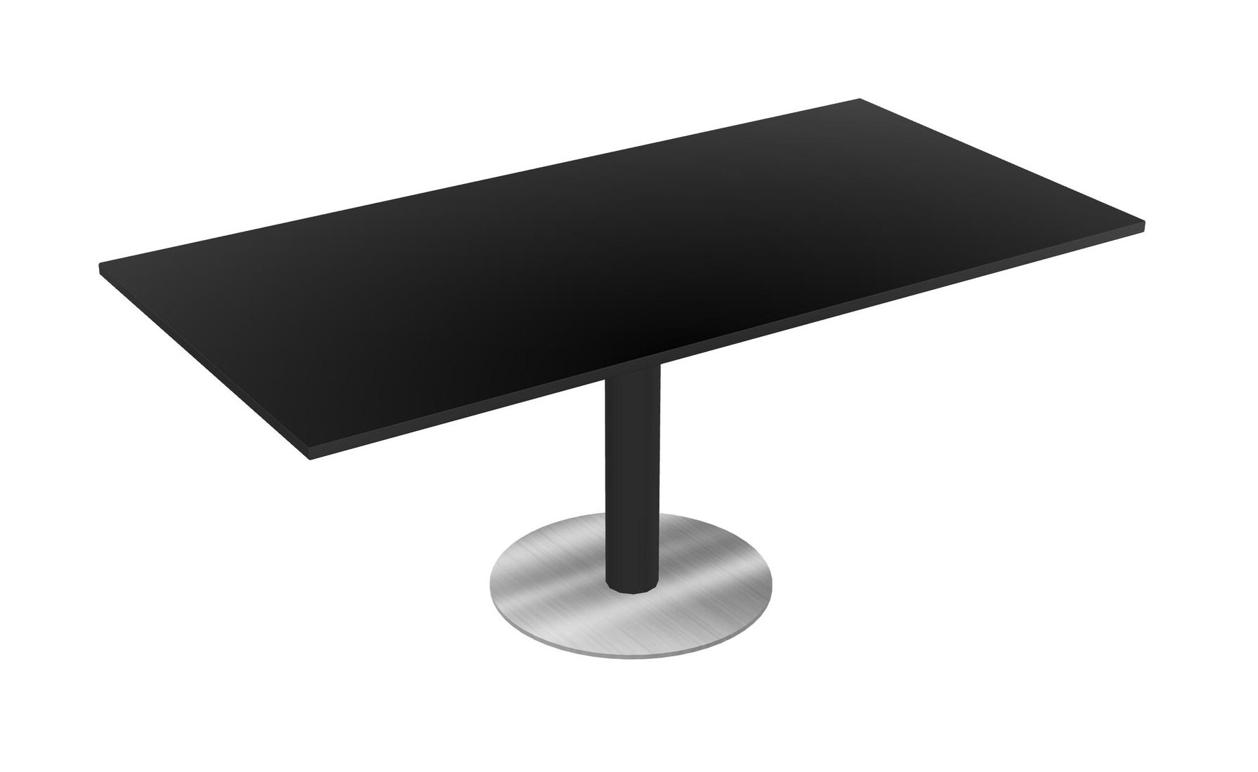 Modular Office, Restaurant, Cafeteria, Lunch Room & Food Service Table With Black Tabletop & Black Round Leg & Chrome Round Base Plate