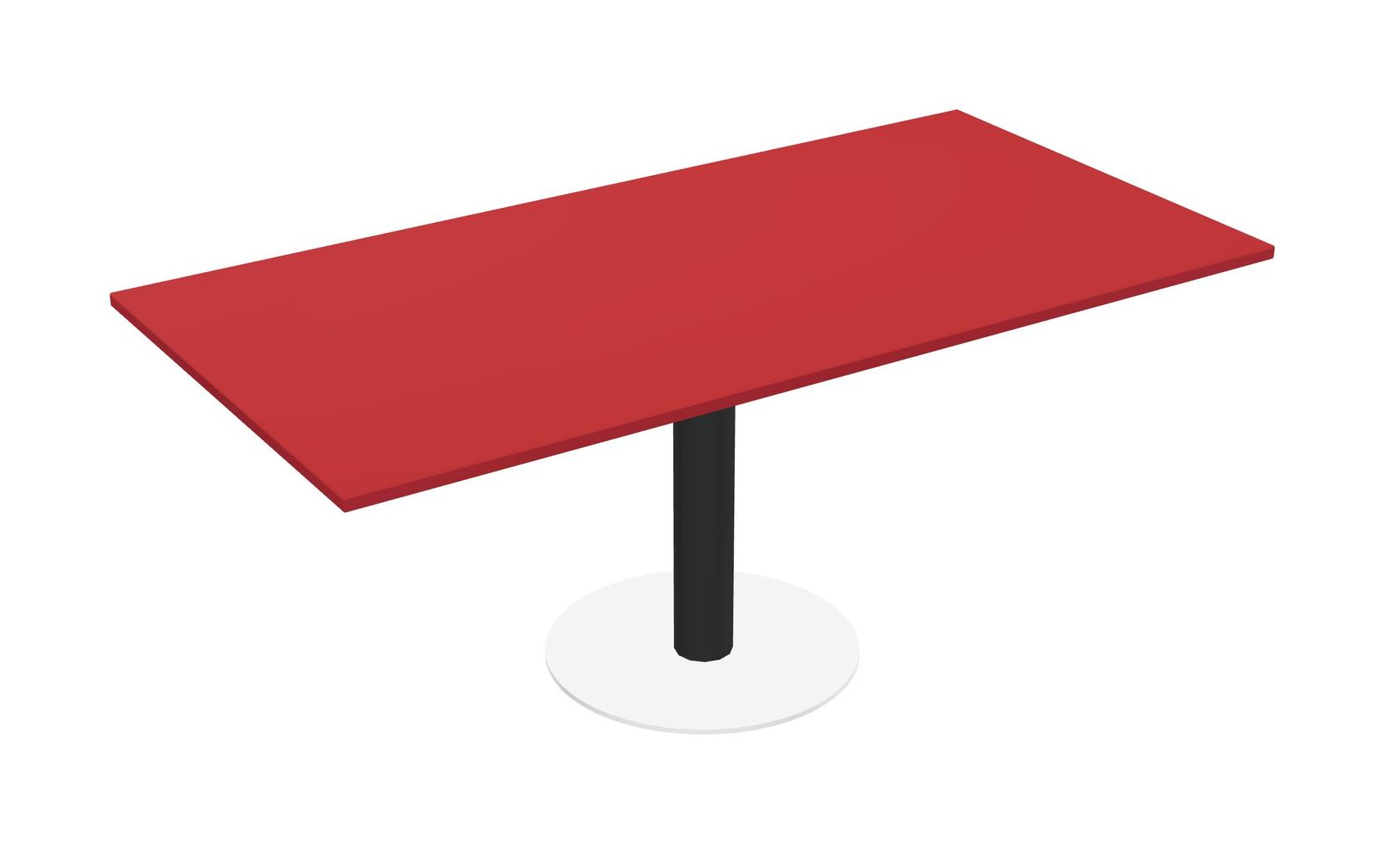 Modular Office, Restaurant, Cafeteria, Lunch Room & Food Service Table With Prism Red Tabletop & Black Round Leg & White Round Base Plate