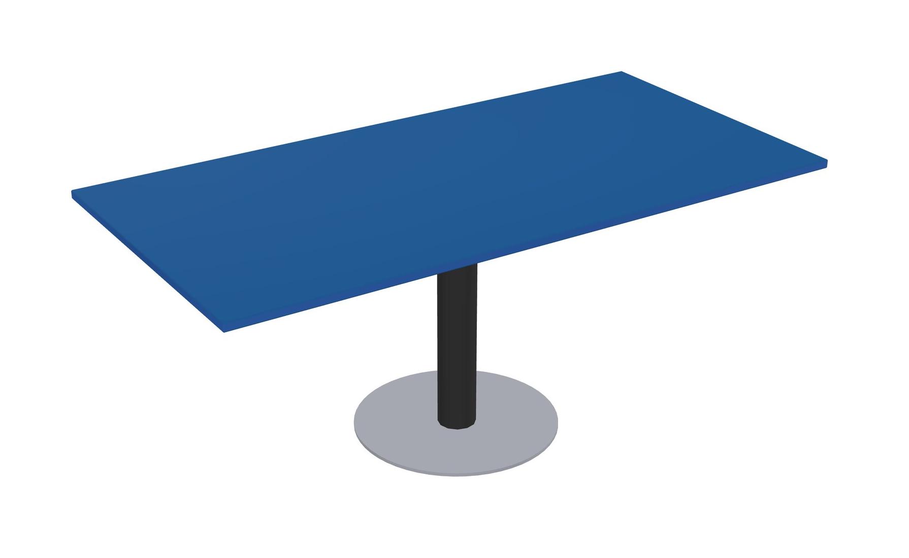 Modular Office, Restaurant, Cafeteria, Lunch Room & Food Service Table With Prism Blue Tabletop & Black Round Leg & Grey Round Base Plate