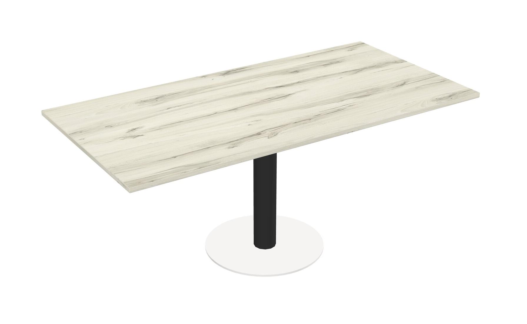 Modular Office, Restaurant, Cafeteria, Lunch Room & Food Service Table With Heinne Holz Tabletop & Black Round Leg & White Round Base Plate