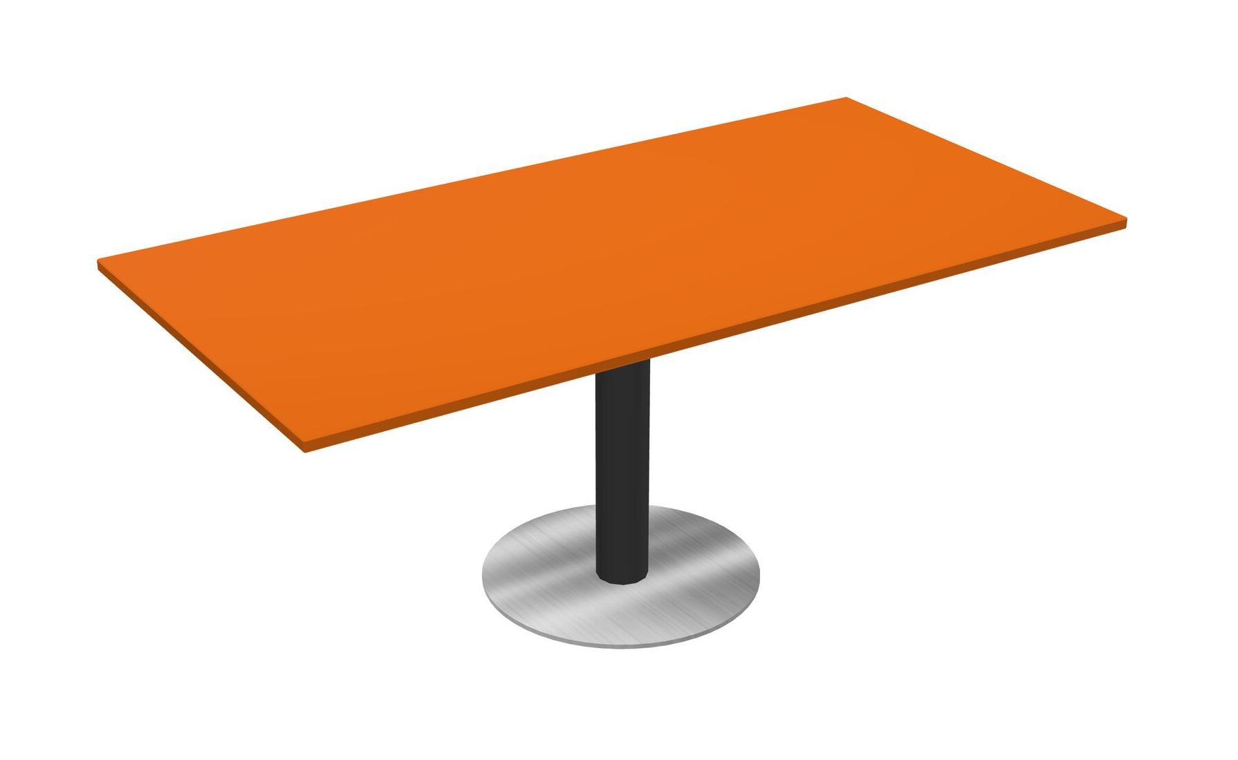 Modular Office, Restaurant, Cafeteria, Lunch Room & Food Service Table With Orange Tabletop & Black Round Leg & Chrome Round Base Plate