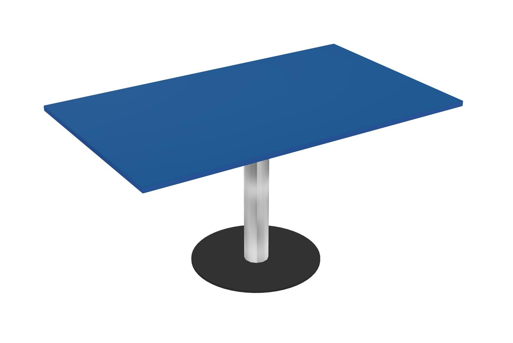 Modular Office, Restaurant, Cafeteria, Lunch Room & Food Service Table With Prism Blue Tabletop & Chrome Round Leg & Black Round Base Plate