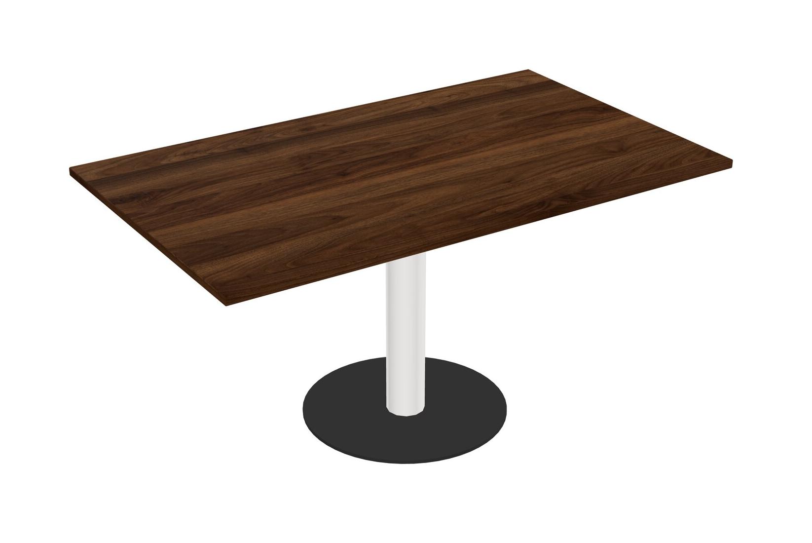 Modular Office, Restaurant, Cafeteria, Lunch Room & Food Service Table With Columbia Walnut Tabletop & White Round Leg & Black Round Base Plate