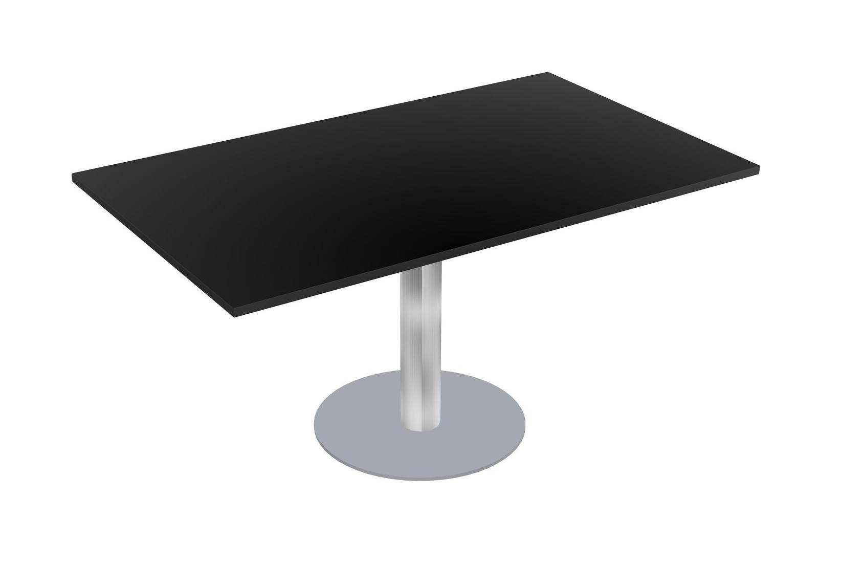 Modular Office, Restaurant, Cafeteria, Lunch Room & Food Service Table With Black Tabletop & Chrome Round Leg & Grey Round Base Plate
