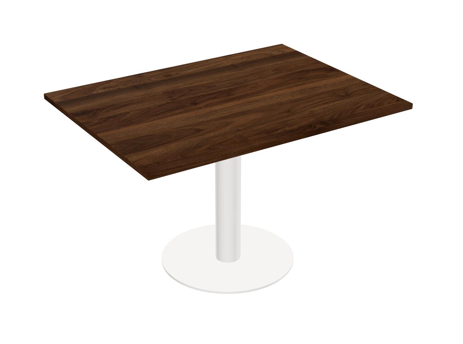 Modular Office, Restaurant, Cafeteria, Lunch Room & Food Service Table With Columbia Walnut Tabletop & White Round Leg & White Round Base Plate