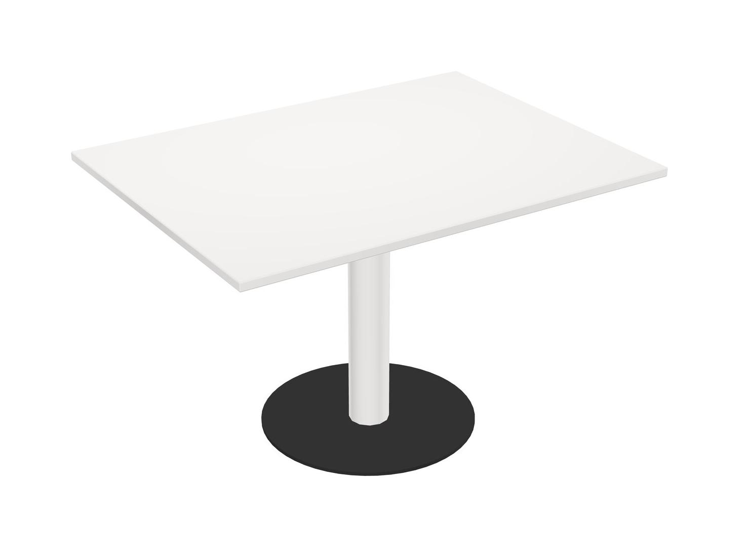 Modular Office, Restaurant, Cafeteria, Lunch Room & Food Service Table With White Tabletop & White Round Leg & Black Round Base Plate